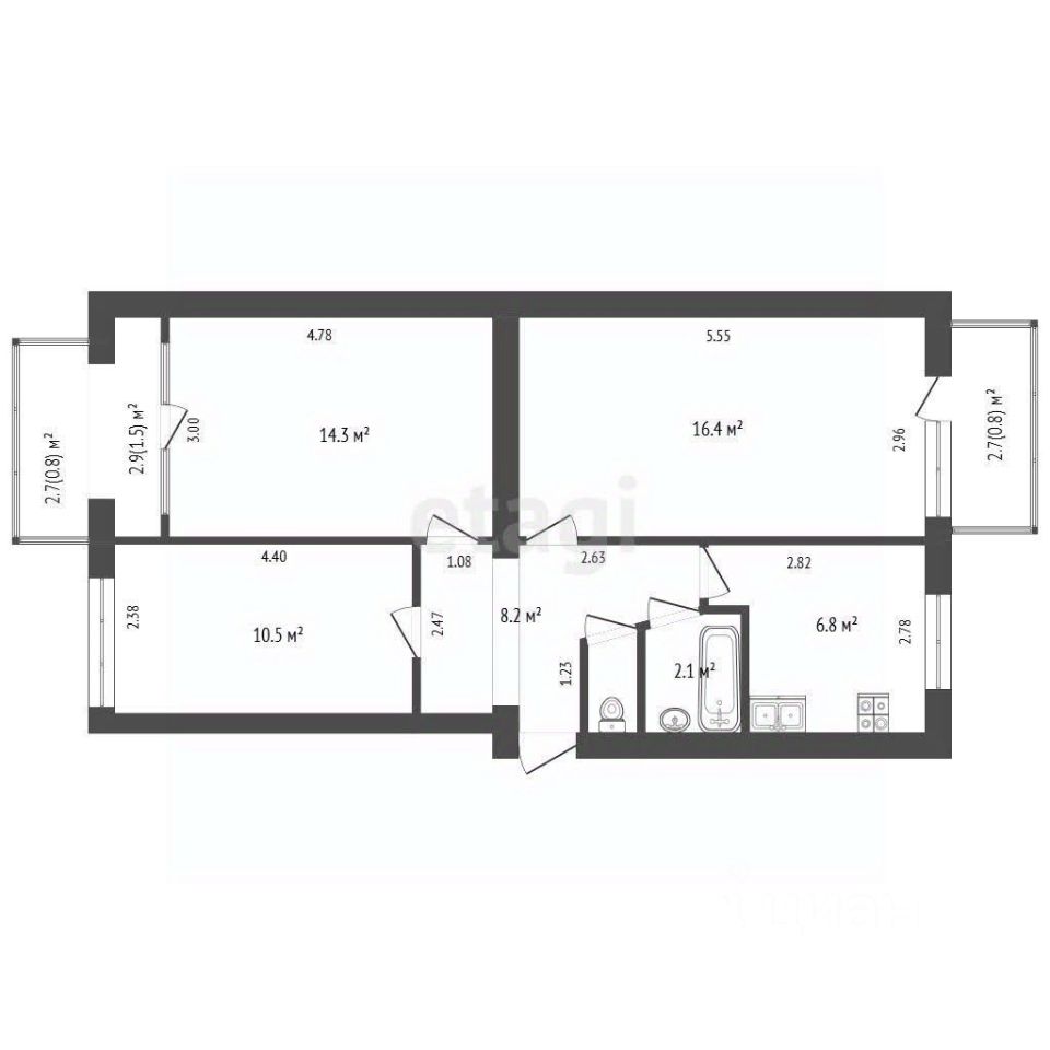 Продается просторная 3-х комнатная квартира в тихом районе, площадью 59.2 кв. м.