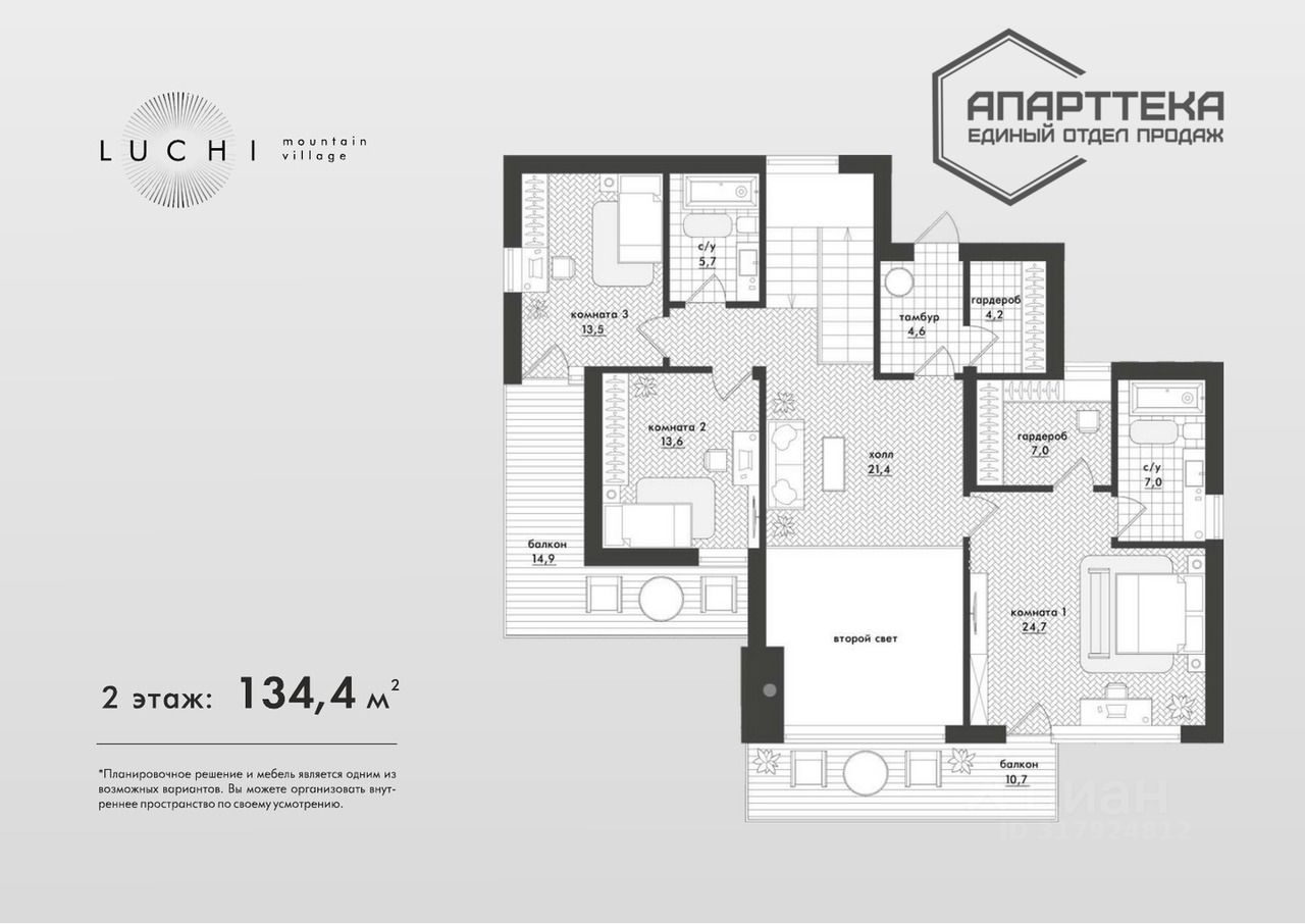 В комплексе своя атмосфера, своя территория 10 гектар - 2 из которых выделены под благоустройство, своя инфраструктура: ресторан, парковая зона, общий бассейн и SPA, инфраструктура для детей и площадки для занятия спортом.