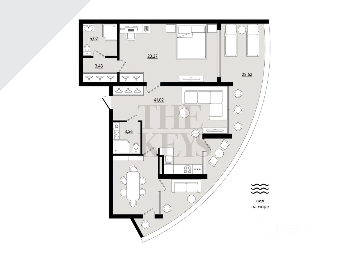 Параметры объекта: - Если собираетесь зарабатывать на сдаче в аренду, можно заключить контракт с управляющей компанией, передать свой апартамент в доверительное управление и получать доход, находясь в любой точке мира - Высота потолков 3м. что зрительно увеличивает пространство - Большая кухня-гостиная 41,02 м. для встречи с самыми близкими, которую можно зонировать и сделать дополнительную комнату - Просторная терраса 22,62м. с шикарными видовыми характеристиками