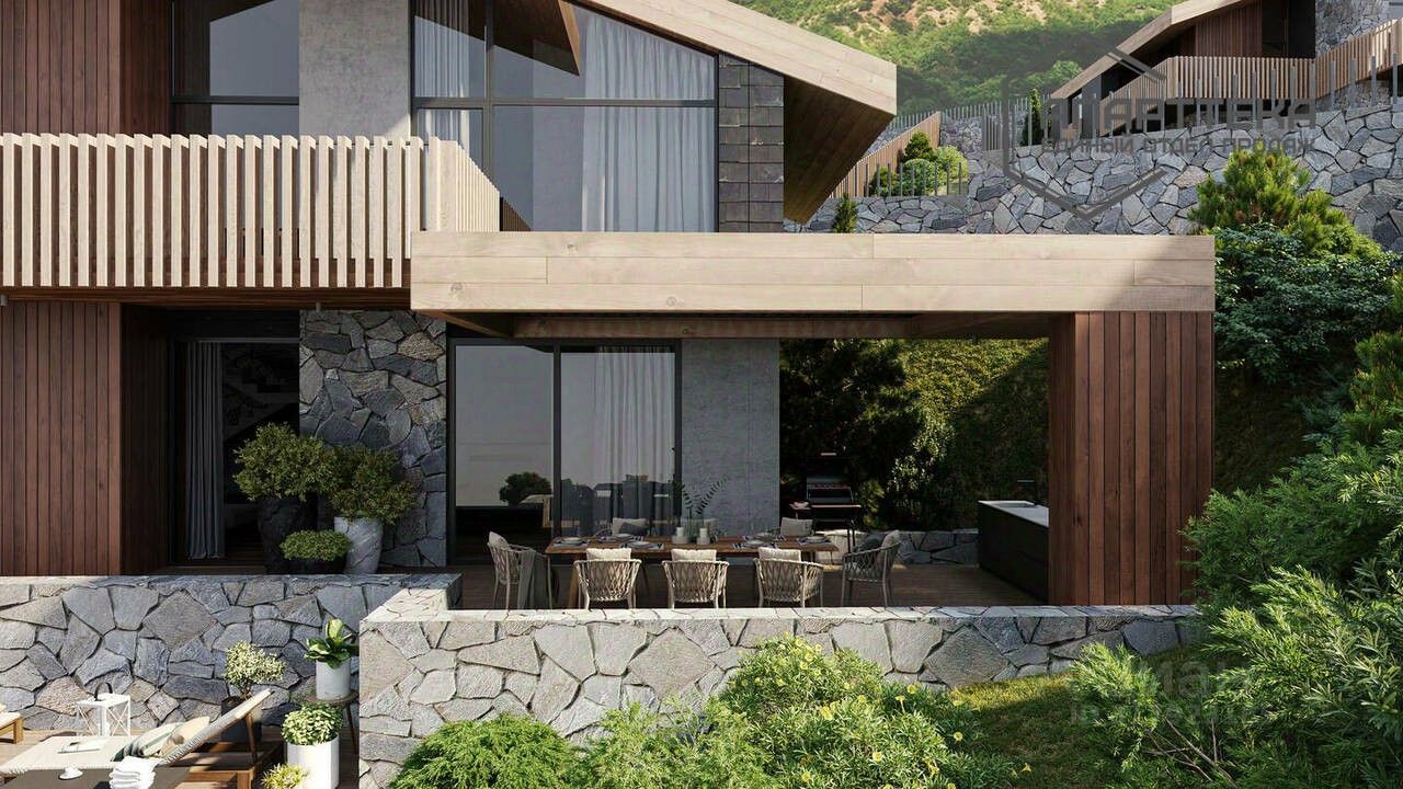 Современный дом в стиле ''Шале'' с террасой и бассейном, зона для патио, панорамное остекление со вторым светом. Гараж и парковочное место. Большой участок под ландшафтный дизайн и дополнение дома всем для вас необходимым.