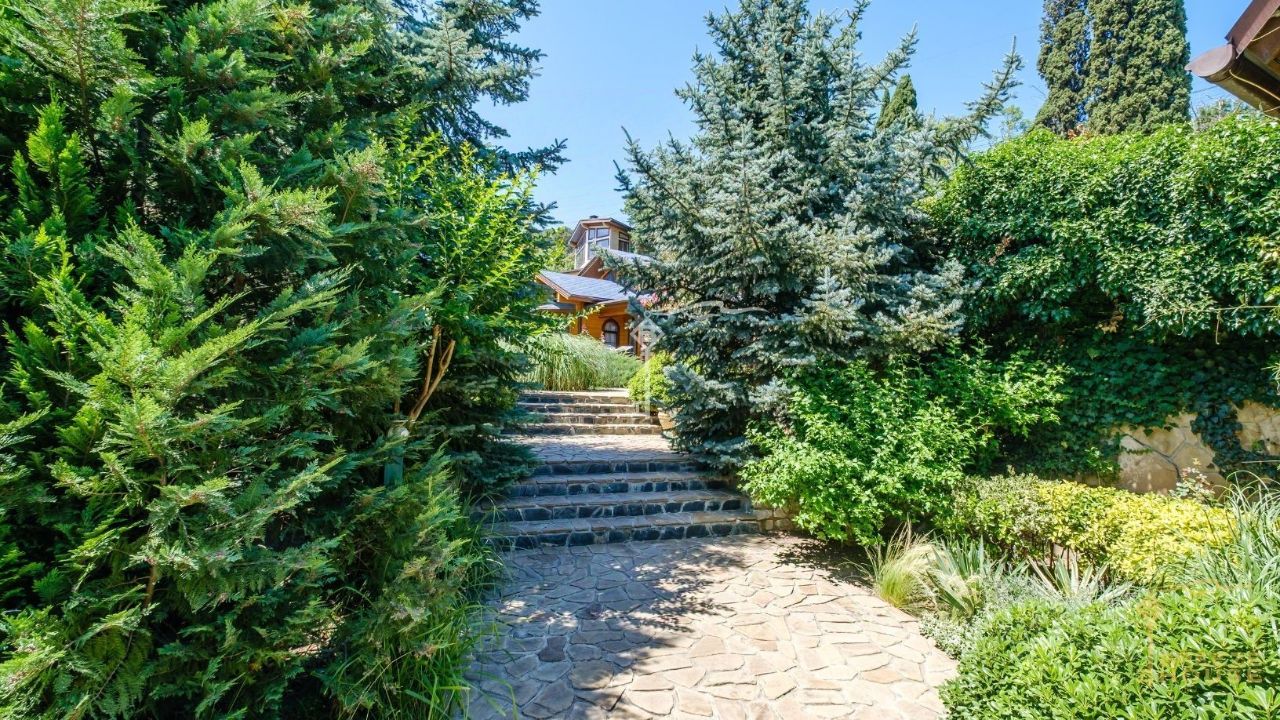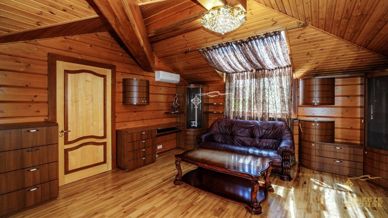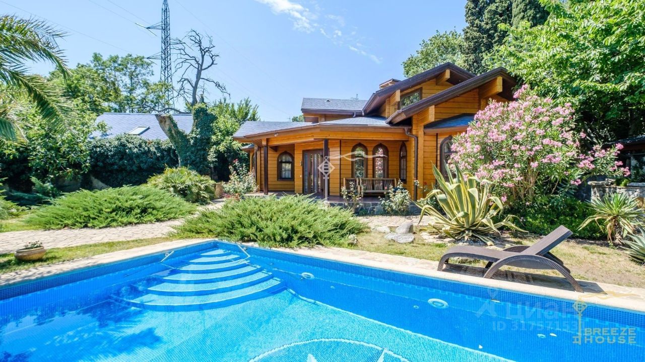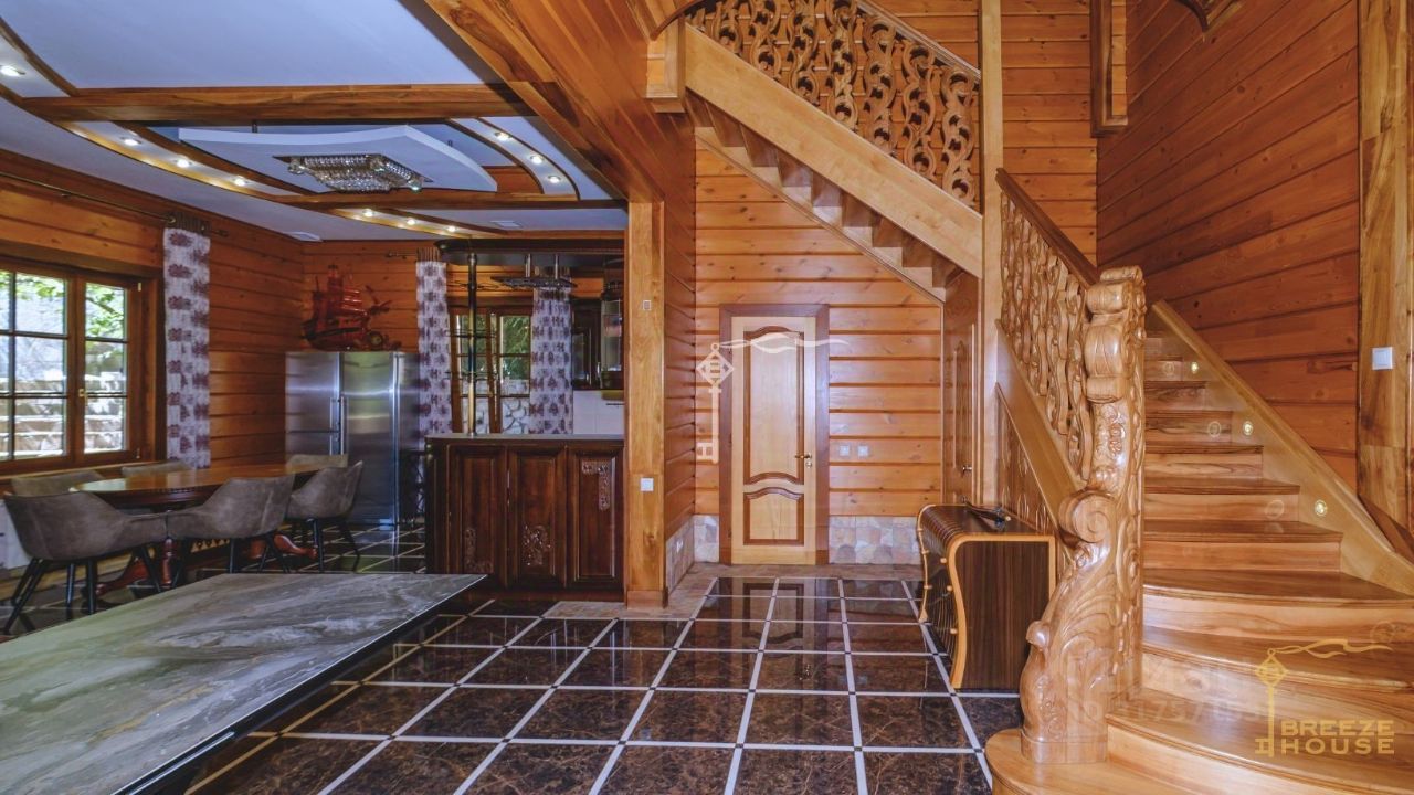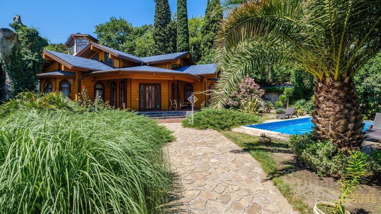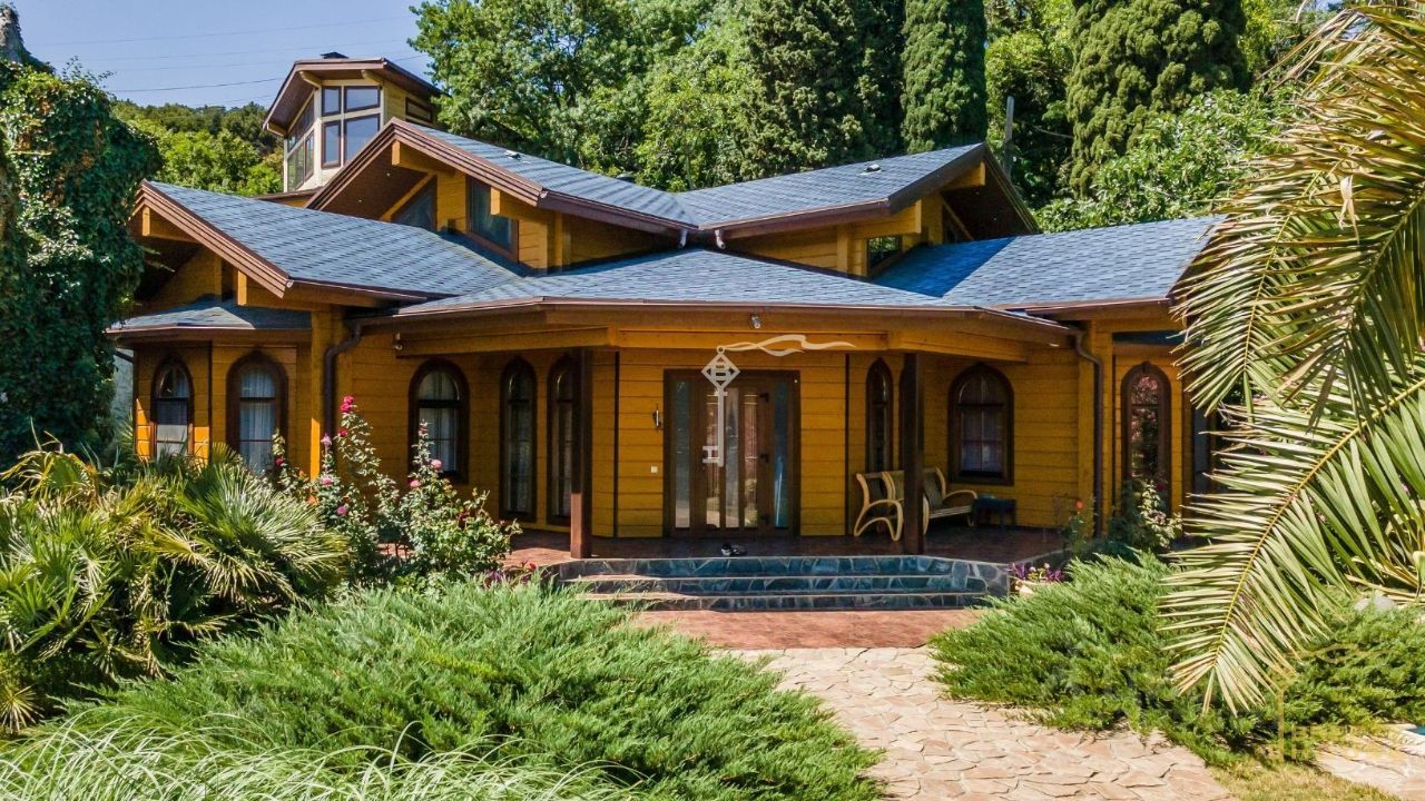Двухэтажный экологичный деревянный дом среди зелени деревьев в Массандре, общей площадью 175 м², расположенный в тихом районе, вдали от шума городских улиц, что обеспечивает высокий уровень комфорта и уединения.