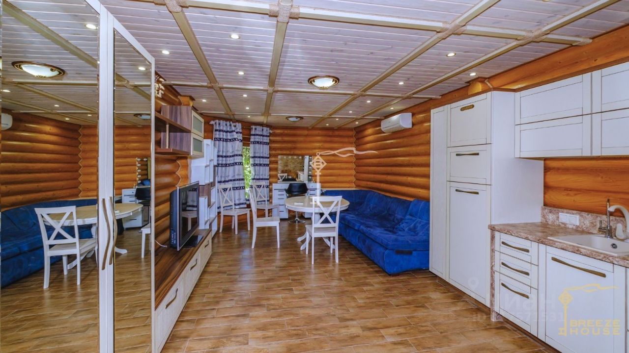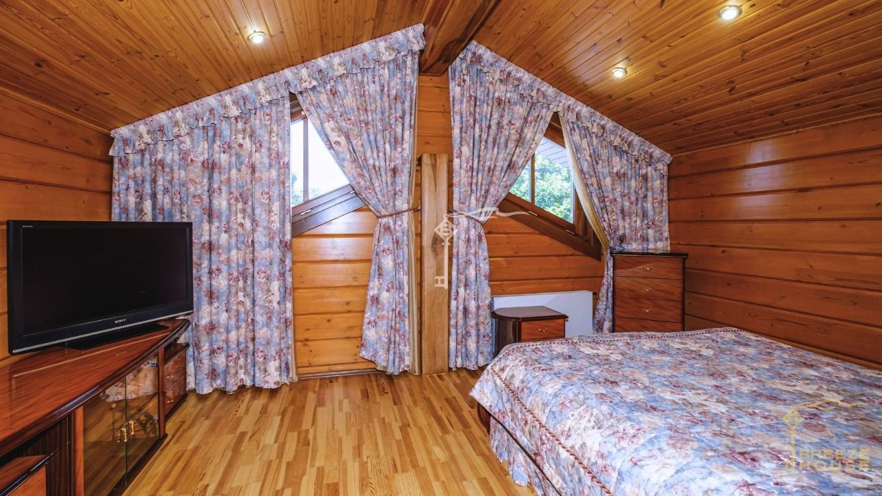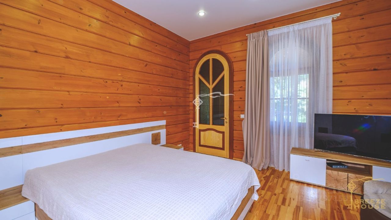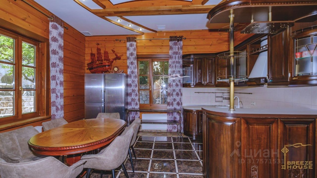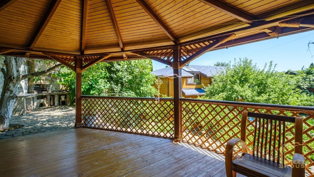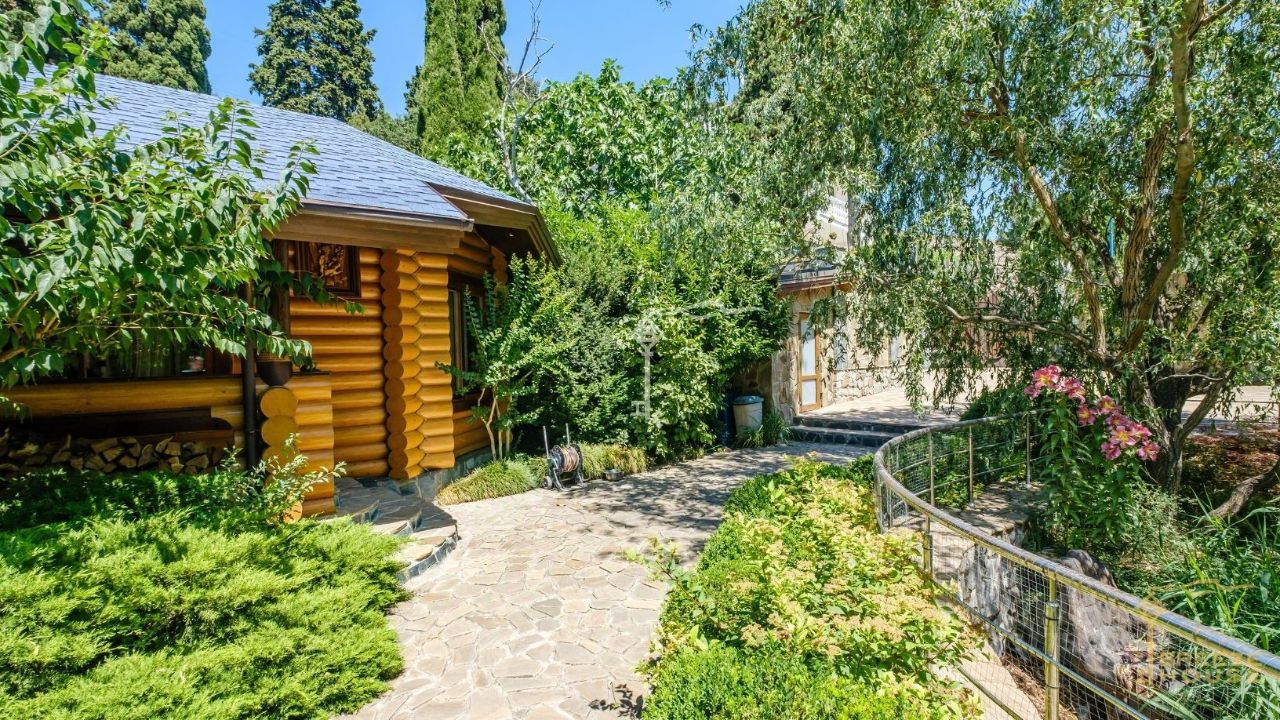 Двухэтажный экологичный деревянный дом среди зелени деревьев в Массандре, общей площадью 175 м², расположенный в тихом районе, вдали от шума городских улиц, что обеспечивает высокий уровень комфорта и уединения.