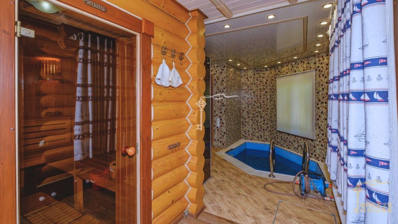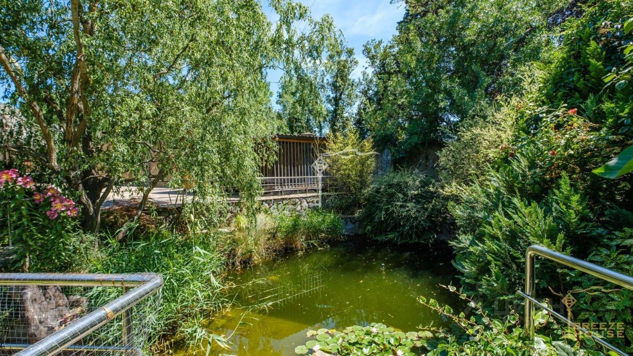 На территории расположена баня с купелью, где можно расслабиться и восстановить силы после насыщенного дня. Рядом с баней находится живописный пруд, который придает участку особую атмосферу спокойствия и уединенности.