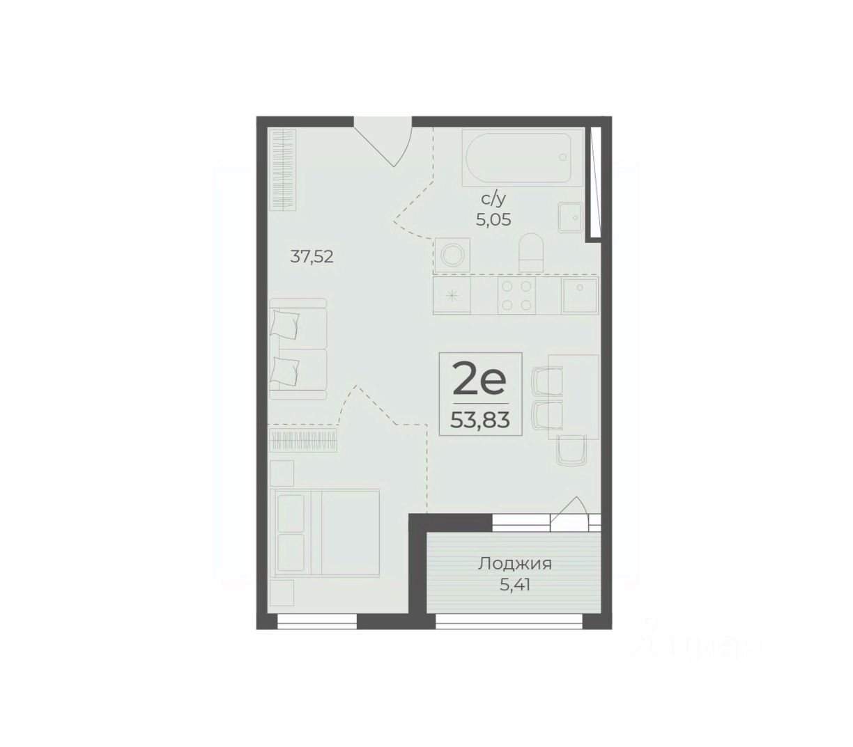 Общая площадь53,83 м2