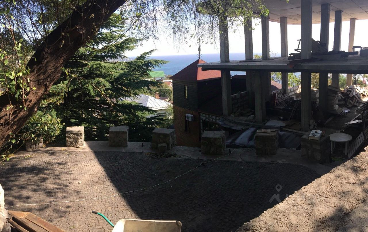 Номер объекта: 1140. Продается жилой с собственным парком. Дом в Алупке на земельном участке 50 соток. На земельном участке: жилой дом площадью 175 кв.м., а также выстроен каркас трехэтажного монолитного здания площадью 500 кв.м. В доме: На первом этаже гостиная с действующим камином и выходом на террасу с местами для отдыха и видом на море, сан узел. На втором этаже три спальни с балконами и видом на море и горы, сан узел с ванной. На третьем этаже обсерватория. Земельный участок 50 соток, 10 соток собственности, 40 соток длительная аренда под ИЖС-постройку и обслуживание жилого дома. Участок спланирован в несколько уровней подпорными стенами из тёсаного бута.