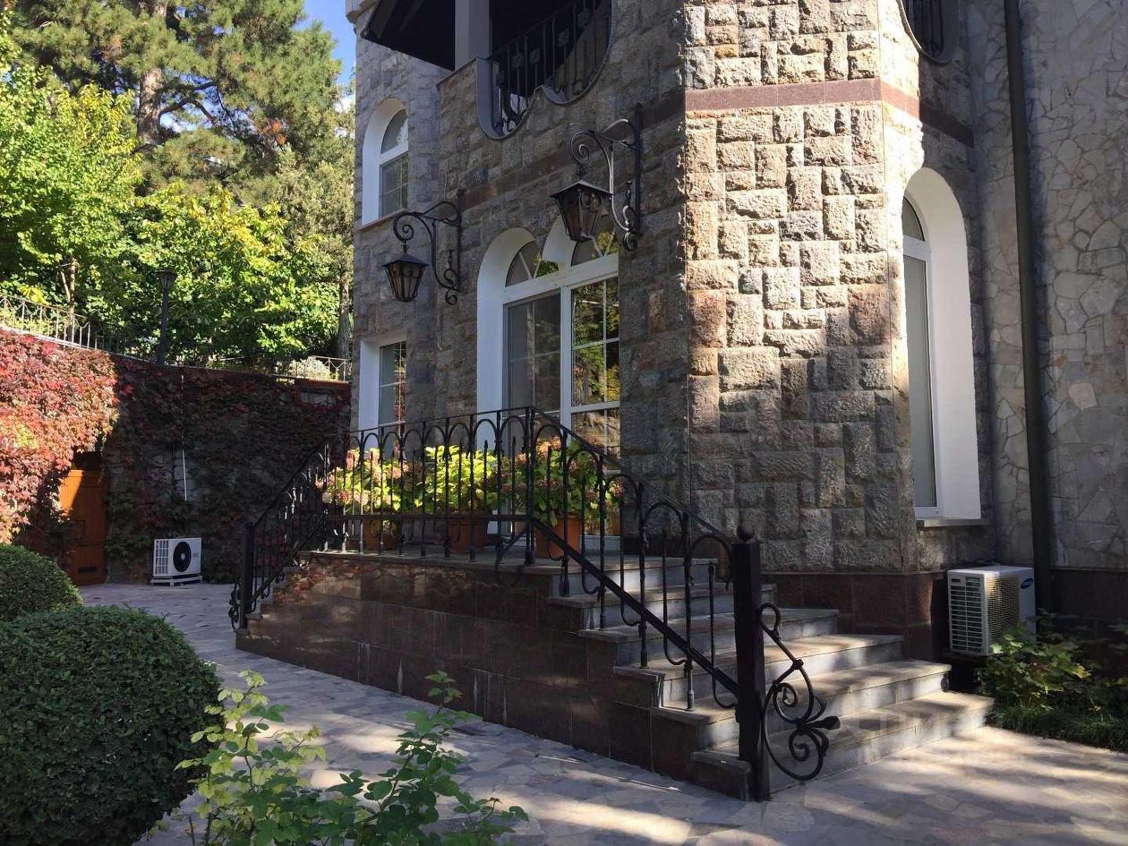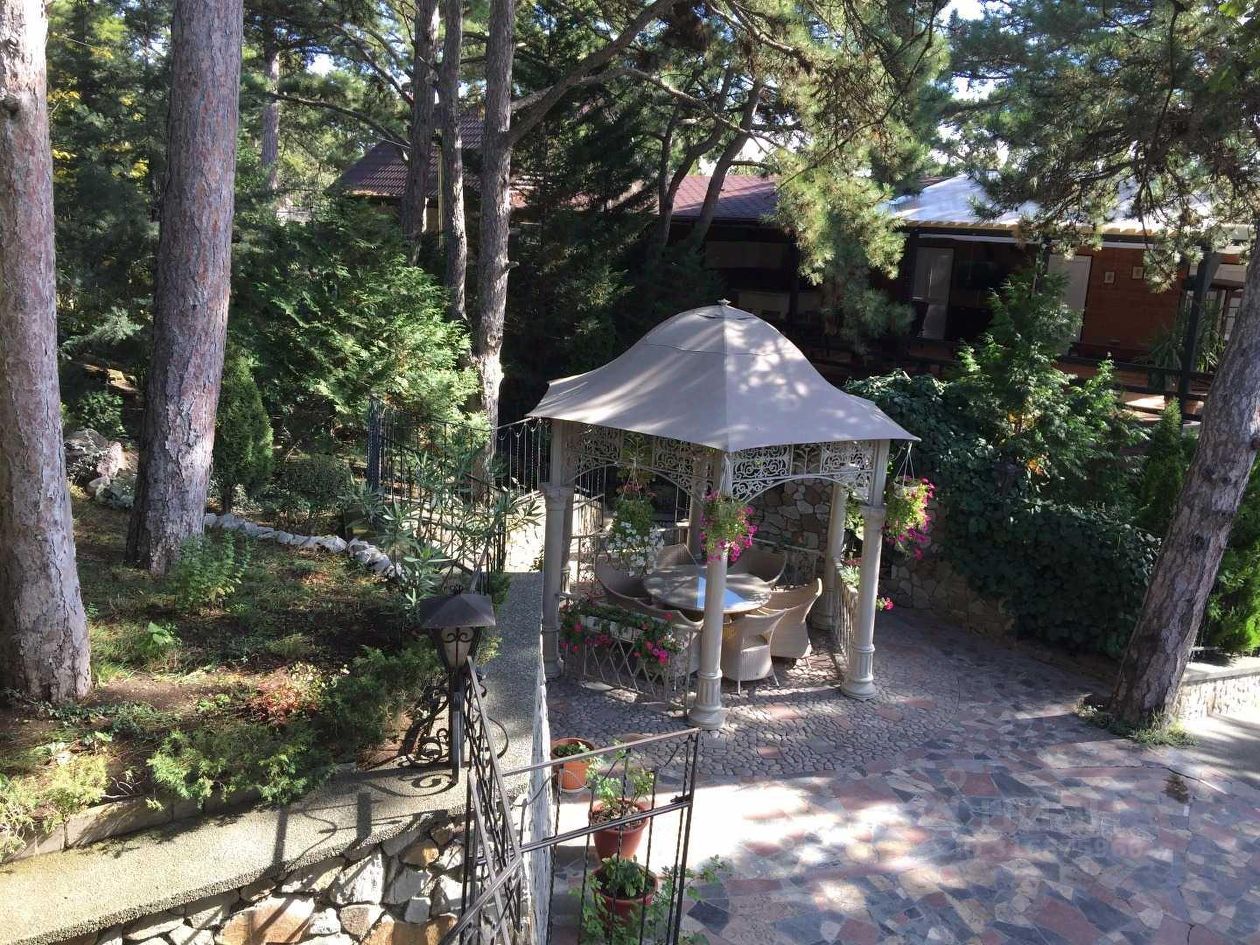 Номер объекта: 845. Продажа виллы в Ялте. Шикарный частный особняк построенный в виде старинного графского замка в элитном поселке среди реликтового соснового леса. Дом в элитном поселке Ялты, сосняк, подкупает своим уютом и респектабельностью. Дом пригоден для круглогодичного проживания и ожидает нового, представительного хозяина. Придомовая территория площадью 22 соток, грамотно и со вкусом спланирована. По всему периметру участка идут монолитные бутовые стены. На придомовой территории детская площадка, винный погреб, технические помещения, зоны отдыха и релакса, открытая парковка на 8 авто, гараж на два авто, большой плавательный бассейн водо вместимостью 82 куба, бассейн с постепенным уклоном разделен на детскую зону и плавательную зону для взрослых, установлена дополнительная чаша гидро ванной, над бассейном просторная лаундж зона с местами для отдыха, летней кухней и баром. Отдельно стоящий гостевой дом на первом этаже сауна с парилкой, просторный предбанник с массажными креслами действующим камином с медной вытяжкой. На втором этаже над сауной гостевые апартаменты 60 кв.м. Весь двор утопает в зелени, большая часть территории находится в тени под сенью исполинских крымских сосен, которых на участке более двух десятков, по мимо этого на участке в большом количестве произрастают туя, можжевельник, пальмы-форчуна, зеленые лужайки. Автоматизированная система полива. Особняк в Ялте введен в эксплуатацию в 2001 году, дом спроектирован и построен по индивидуальному архитектурному проекту. Фундамент железо бетонная плита, каркас и перекрытия железо бетонный монолит, полости заполнены природным камнем ракушкой в полный камень, облицовка дома выполнена редким и красивым Гаспринским камнем серого цвета с алыми прожилками. С северной стороны дома отдельный вход в комнату для персонала. Комната персонала состоит из кухни-студии с евро ремонтом и просторного сан узла. Комната полностью автономна. На первом этаже виллы в Ялте прихожая, отопительные котлы, кабинет, кухня-гостиная сан узел. На втором этаже виллы в Ялте две хозяйские спальни с выходами на балкон. Балконы ориентированы на север и юг. На балконах установлена садовая мебель, с балконов открывается вид на море и хвойный лес. Так же на втором этаже расположен сан узел и душ, изысканная просторная ванная комната, большой встроенный шкаф и детская комната. Третий этаж комната отдыха-Бильярдная, спорт зал. Лестница между этажами выполнена из натурального массива дерева. Дом изумительный не имеет аналогов в Крыму, идеально подходит для частной резиденции для круглогодичного проживания или для сезонного отдыха в сосновом реликтовом лесу в окружении тишины, респектабельности и комфорта. Достаточно увидеть этот дом и в него невозможно не влюбится с первого взгляда.