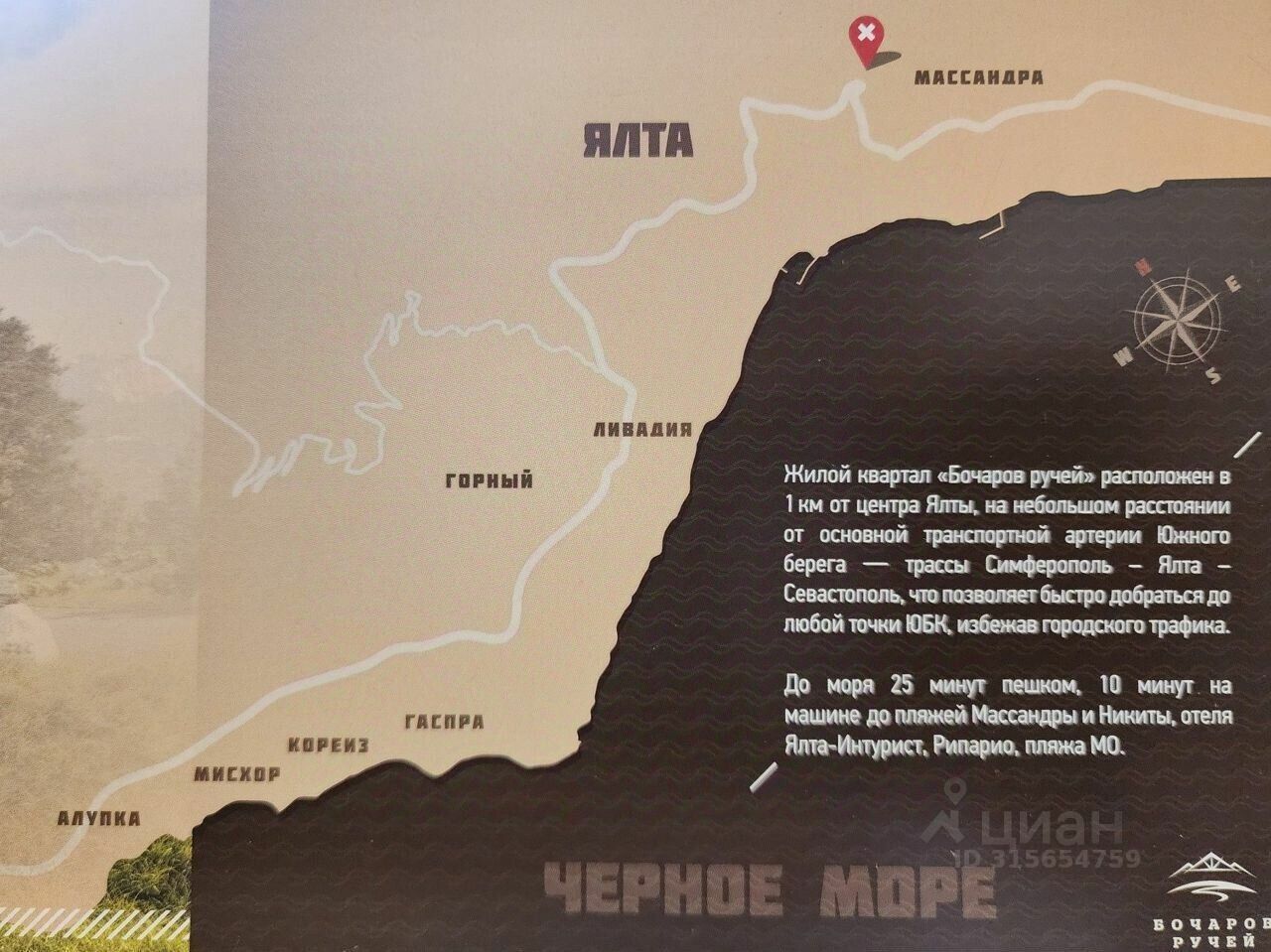 Комплекс под названием ''Бочаров Ручей'' граничит с Массандровским заповедником, спроектирован и построен на берегу чистейшей горной реки ''Гува'' в стиле Альпийского Шале.