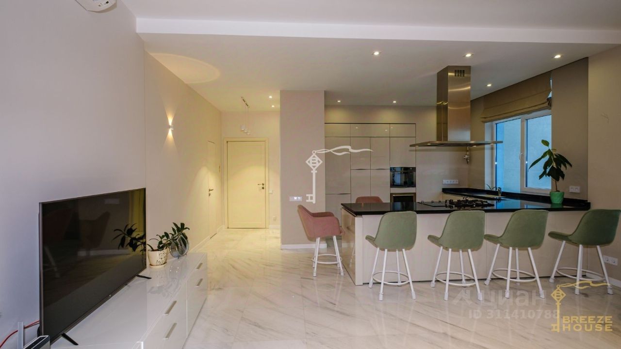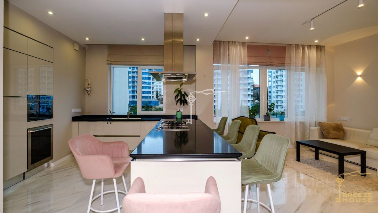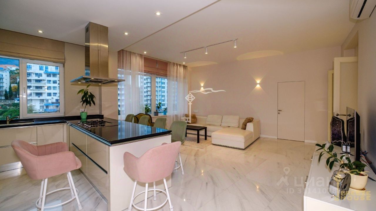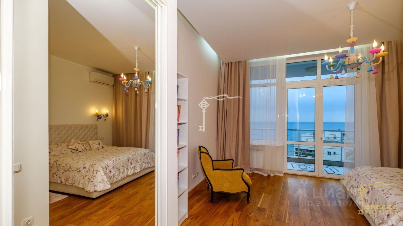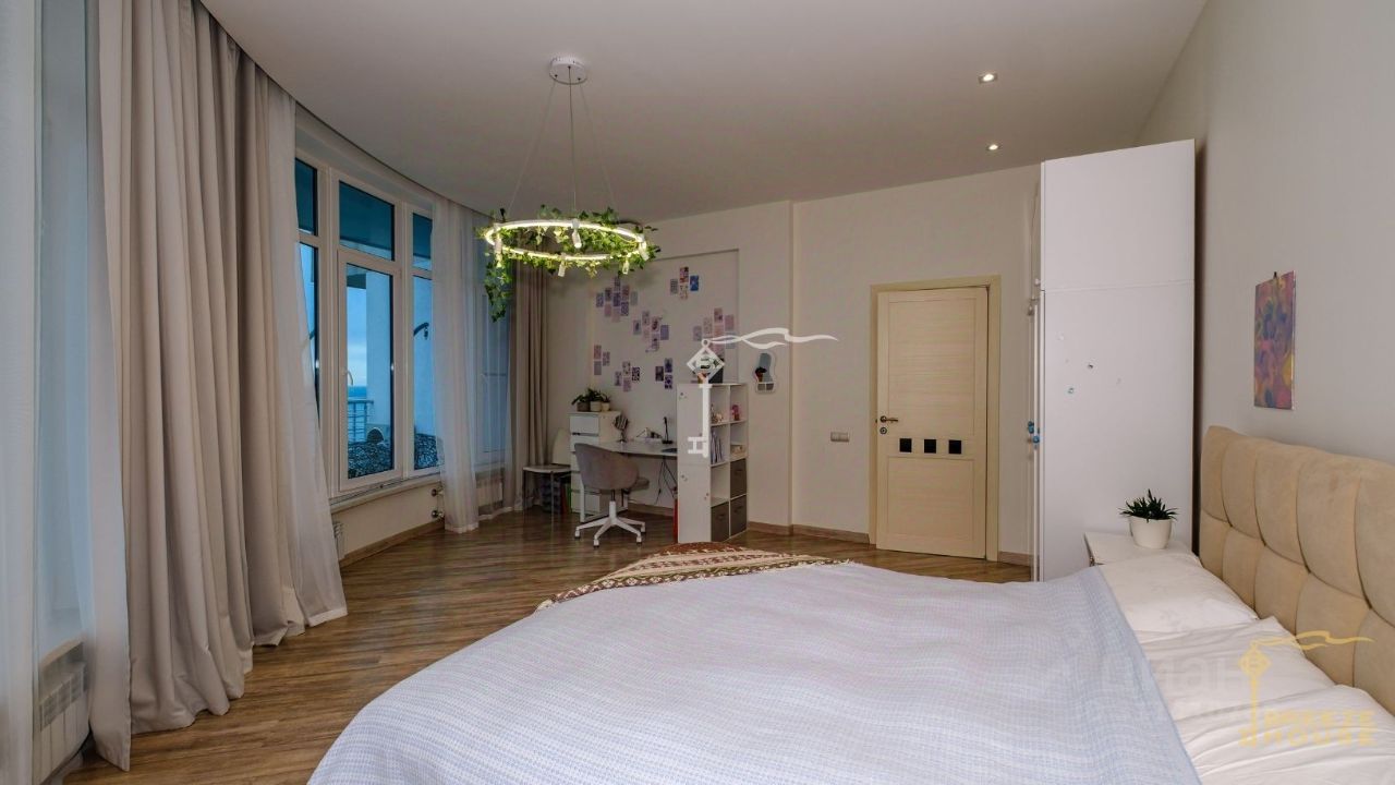 - Кухня-гостиная. Огромная кухня-гостиная площадью 50 м² с островом идеально подходит как для семейных обедов, так и для приёмов гостей. - Спальни. В каждой панорамное остекление с захватывающим видом на море и горы. На полу - паркетная доска. Всего три спальни, одна из них с просторной гардеробной. - Лоджия и балкон. Просторная лоджия 40 м² и балкон с видом на море — идеальное место для отдыха, встреч с друзьями или уединения на свежем воздухе. - Двери и фурнитура. В квартире установлены двери из массива дерева. Все элементы интерьера тщательно подобраны для создания гармоничного и стильного пространства. - Полы. Во всей квартире уложен натуральный мрамор, который придаёт помещению элегантность и шик, а теплые полы обеспечивают комфортный микроклимат в любое время года. - Санузлы. В квартире предусмотрена просторная ванная комната и отдельный санузел. Интерьер продуман до мелочей — от элегантных кафельных плиток до сантехники от ведущих производителей.