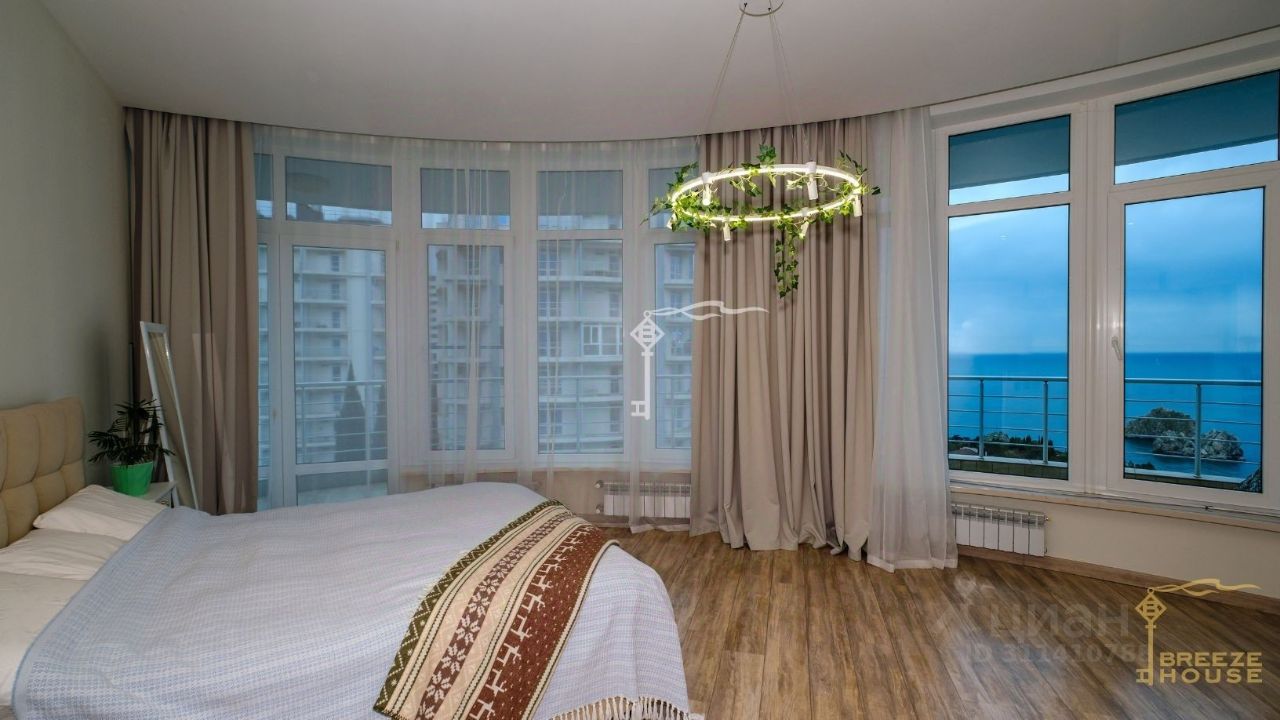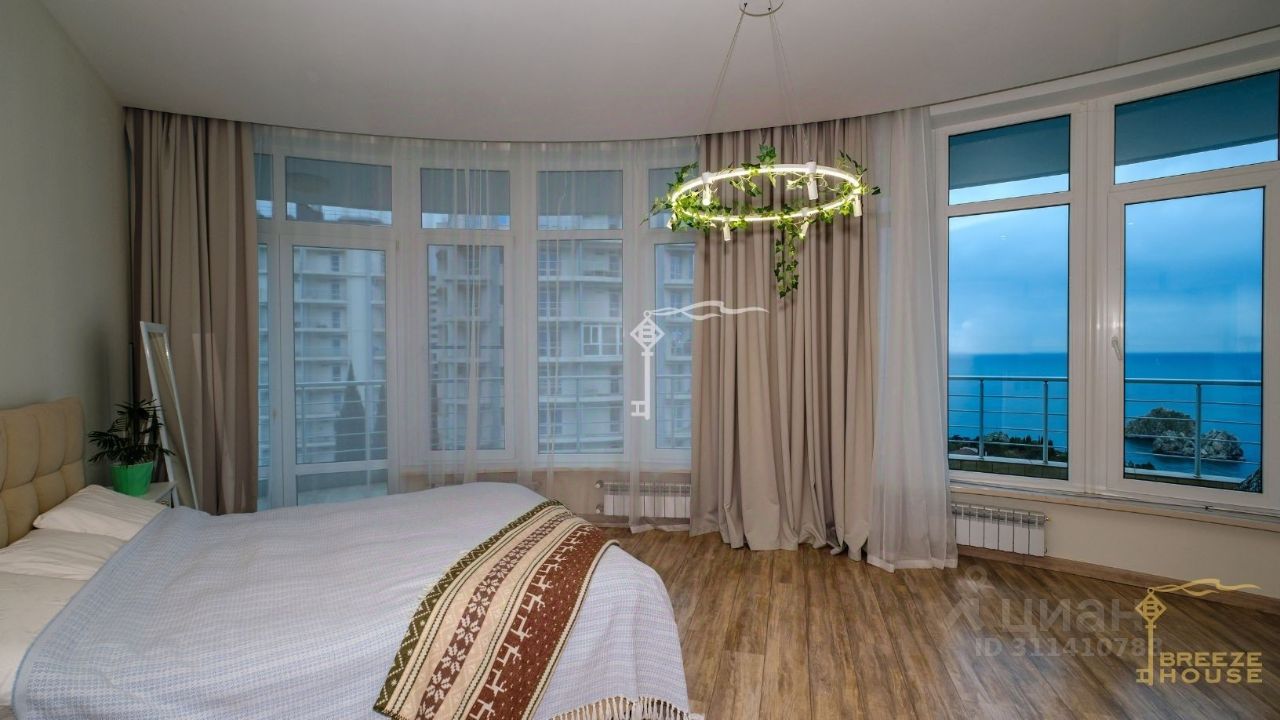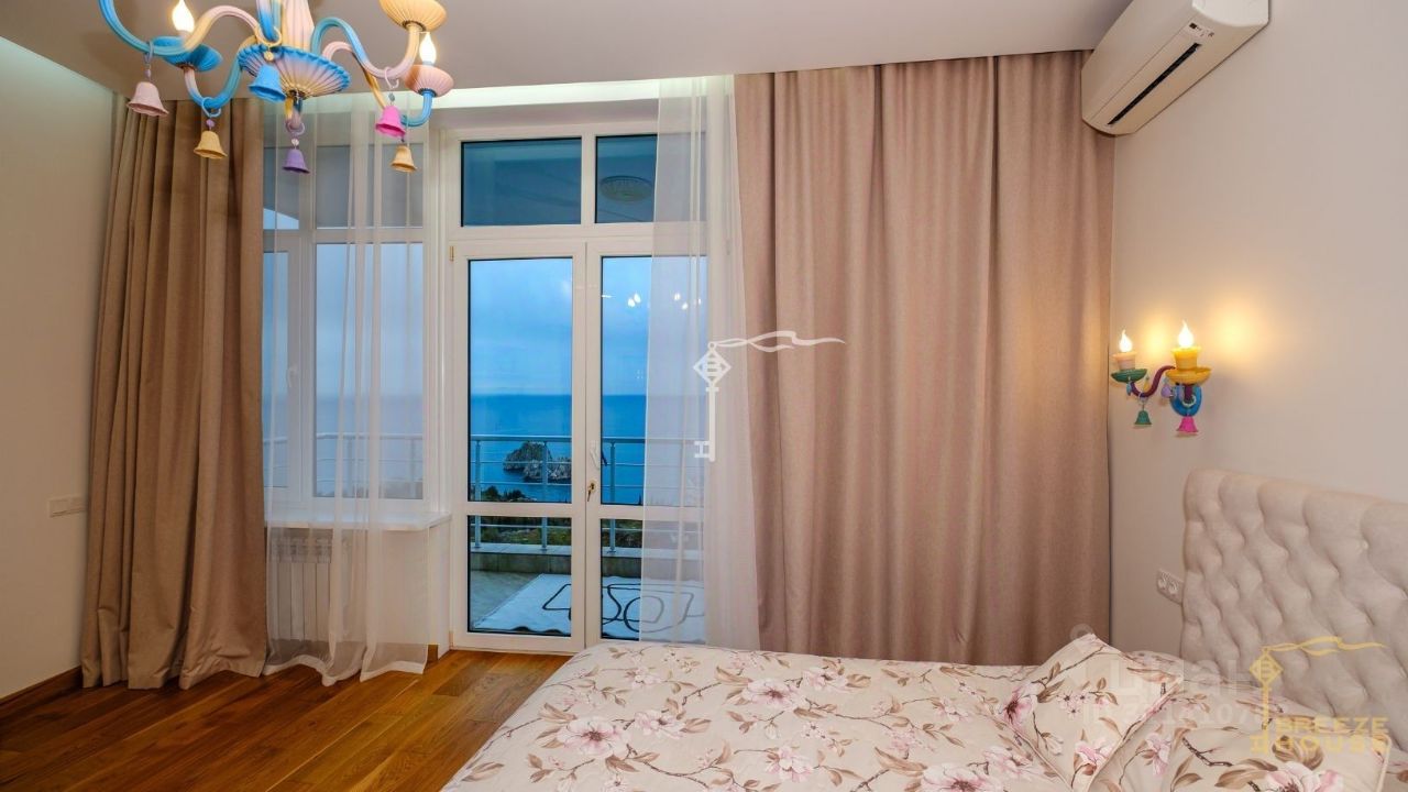 - Кухня-гостиная. Огромная кухня-гостиная площадью 50 м² с островом идеально подходит как для семейных обедов, так и для приёмов гостей. - Спальни. В каждой панорамное остекление с захватывающим видом на море и горы. На полу - паркетная доска.