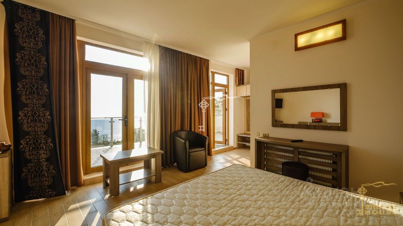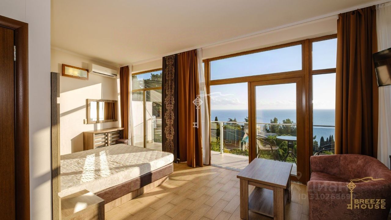 Лучшие пляжи южного побережья всего в 10 минутах от дома, самая чистая морская вода в Крыму, нереальные завораживающие виды на горы, прогулочная набережная 1.5 км., вдоль нее произрастает реликтовая хвойная роща, в пошаговой доступности: большой парк Жуковка, продуктовые магазины, детская площадка. Мини-отель сдают полностью посуточно. Арендная плата всего комплекса составляет от 35 000 до 50 000 рублей в сутки.