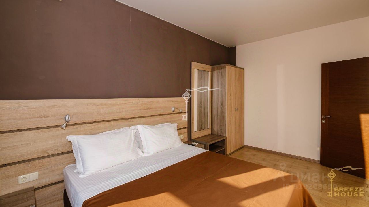 В двухэтажный корпус вход осуществляется через внутренний двор. Общая зона кухни-гостиной с необходимой техникой, две светлые спальни и санузел, а на втором этаже спальня с выходом на видовой балкон. Дом можно использовать как для собственного проживания на территории вашей гостиницы, так и сдавать.