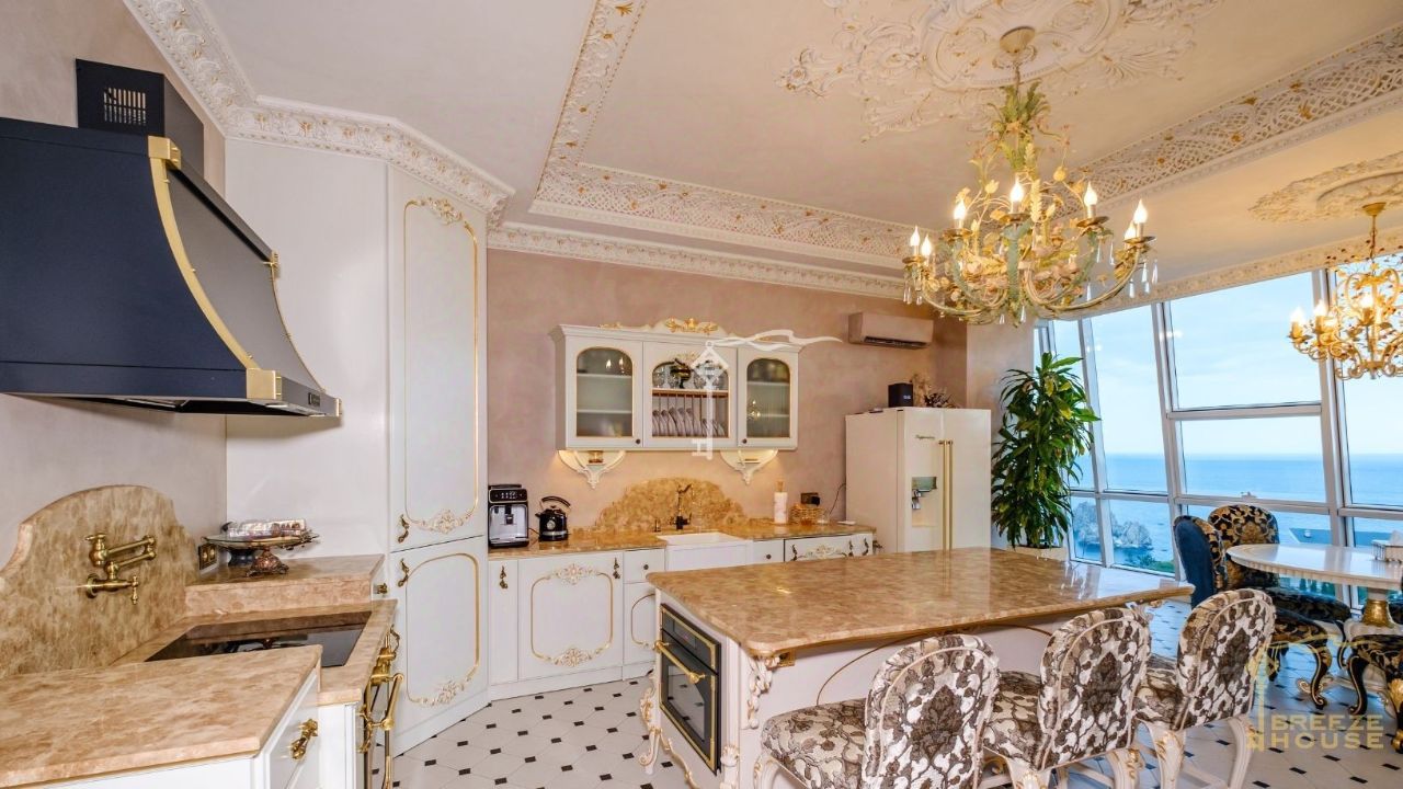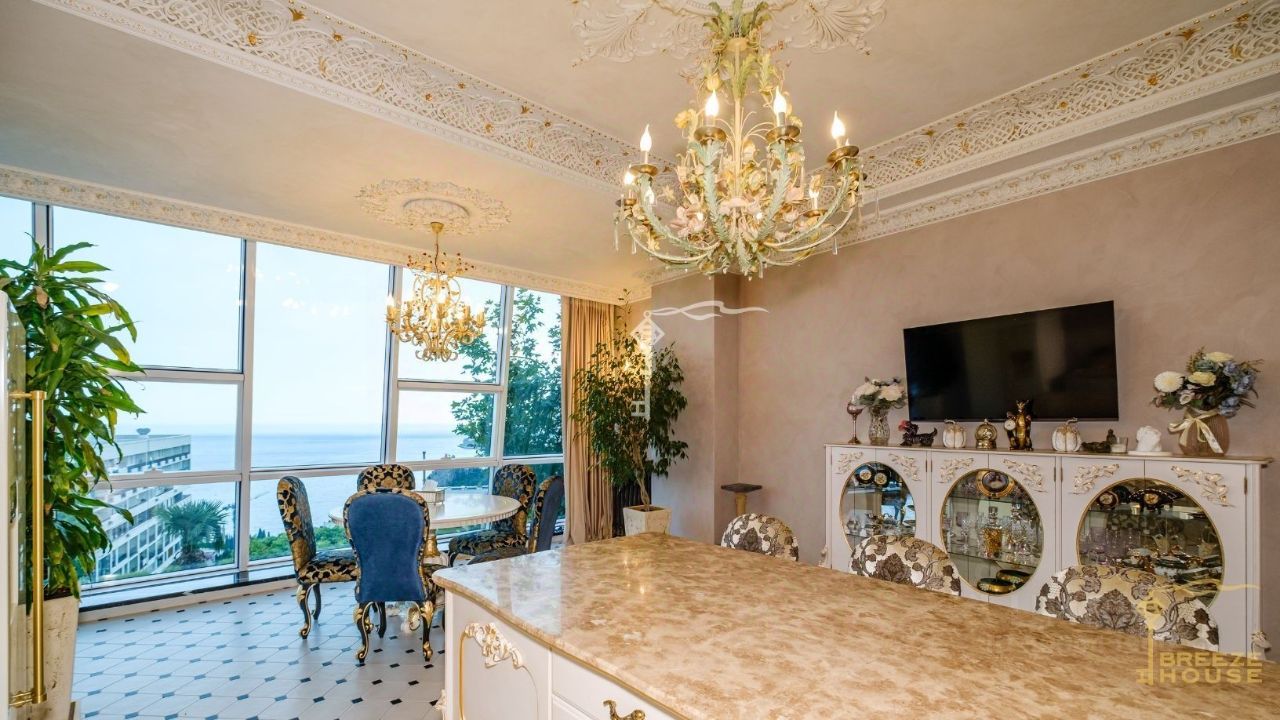Продажа роскошной трехкомнатной квартиры с дизайнерским ремонтом и панорамными окнами в пол с одним из лучших видов на море, расположенной в VIP корпусе жилого комплекса бизнес-класса Ришелье Шато в Гурзуфе.