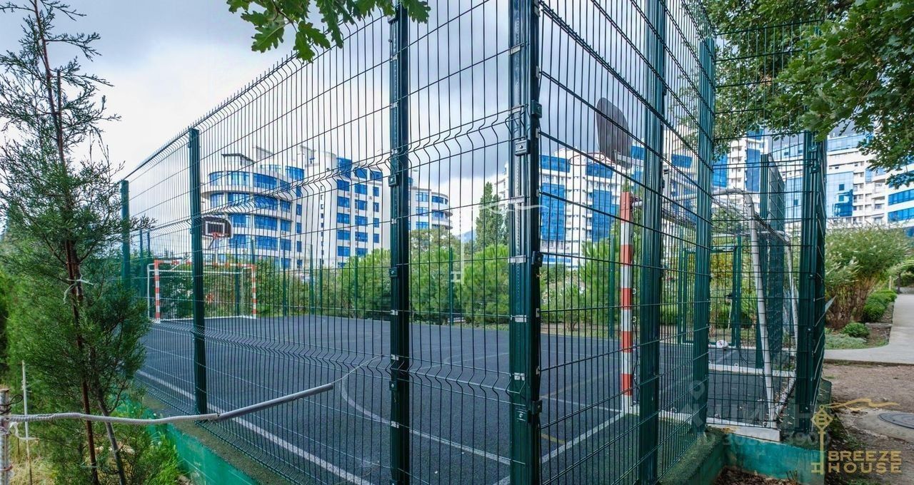 -лаундж-зону с детским и взрослым бассейнами, -детскую площадку, -фитнес-центр, -магазины, кафе и рестораны, -охраняемый паркинг и территорию, -системы охранной и пожарной сигнализации.
