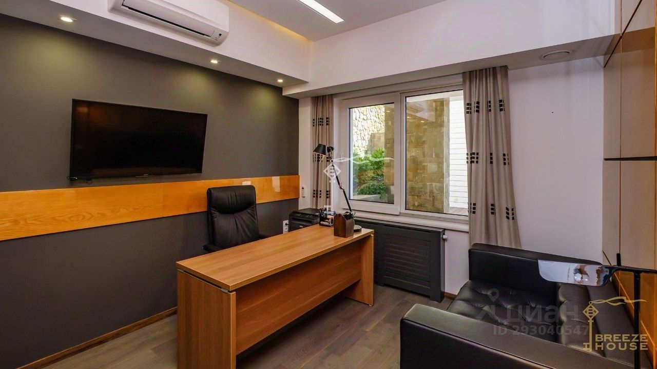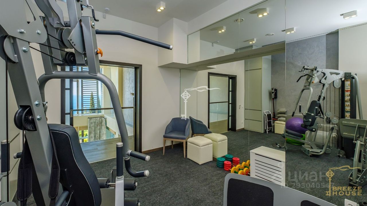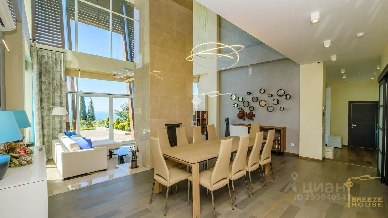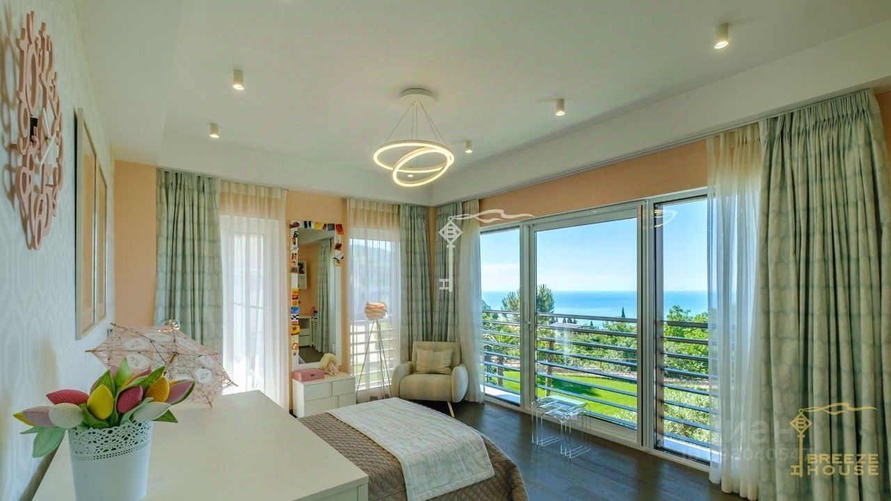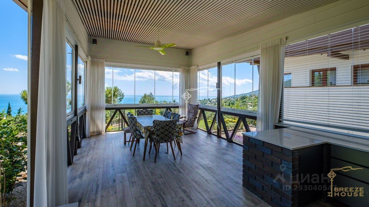 -Гостевои дом 78,6 м² представляет собои две зеркальные квартиры с витражным остеклением в зоне гостинои, дизаин интерьера также выполнен в современном стиле. -Беседку с видом на Черное море и горы. На благоустроенной территории высажены уникальные деревья и растения, завезенные из Италии, сделана система автополива, а также расположены: