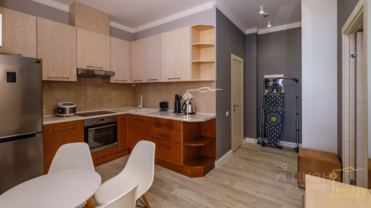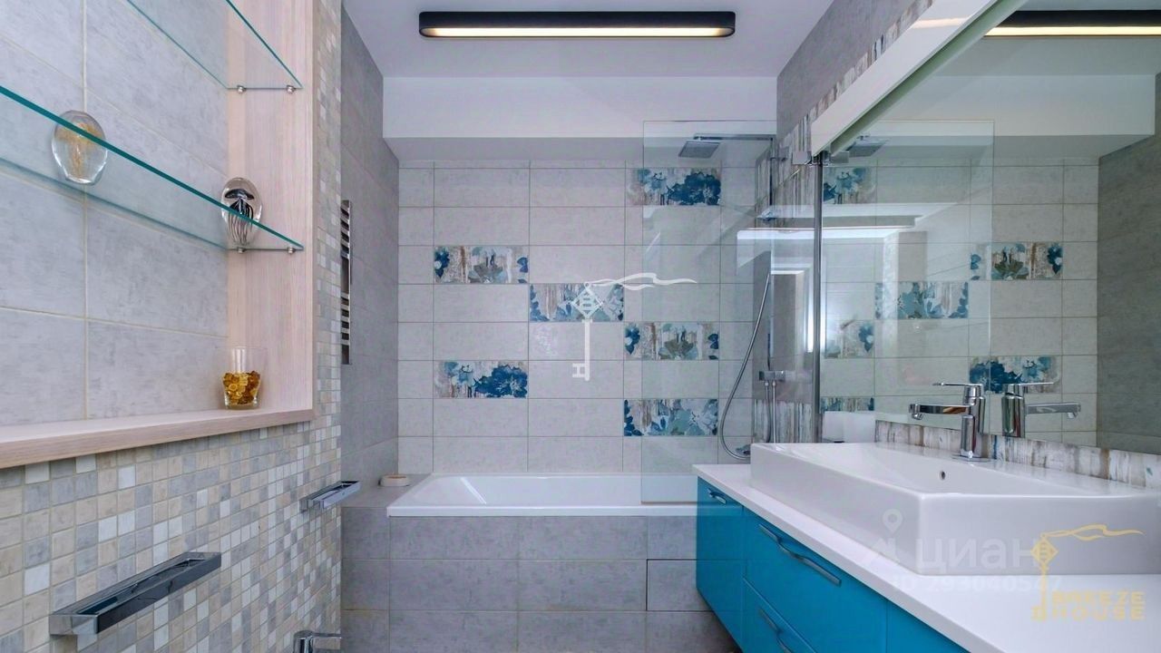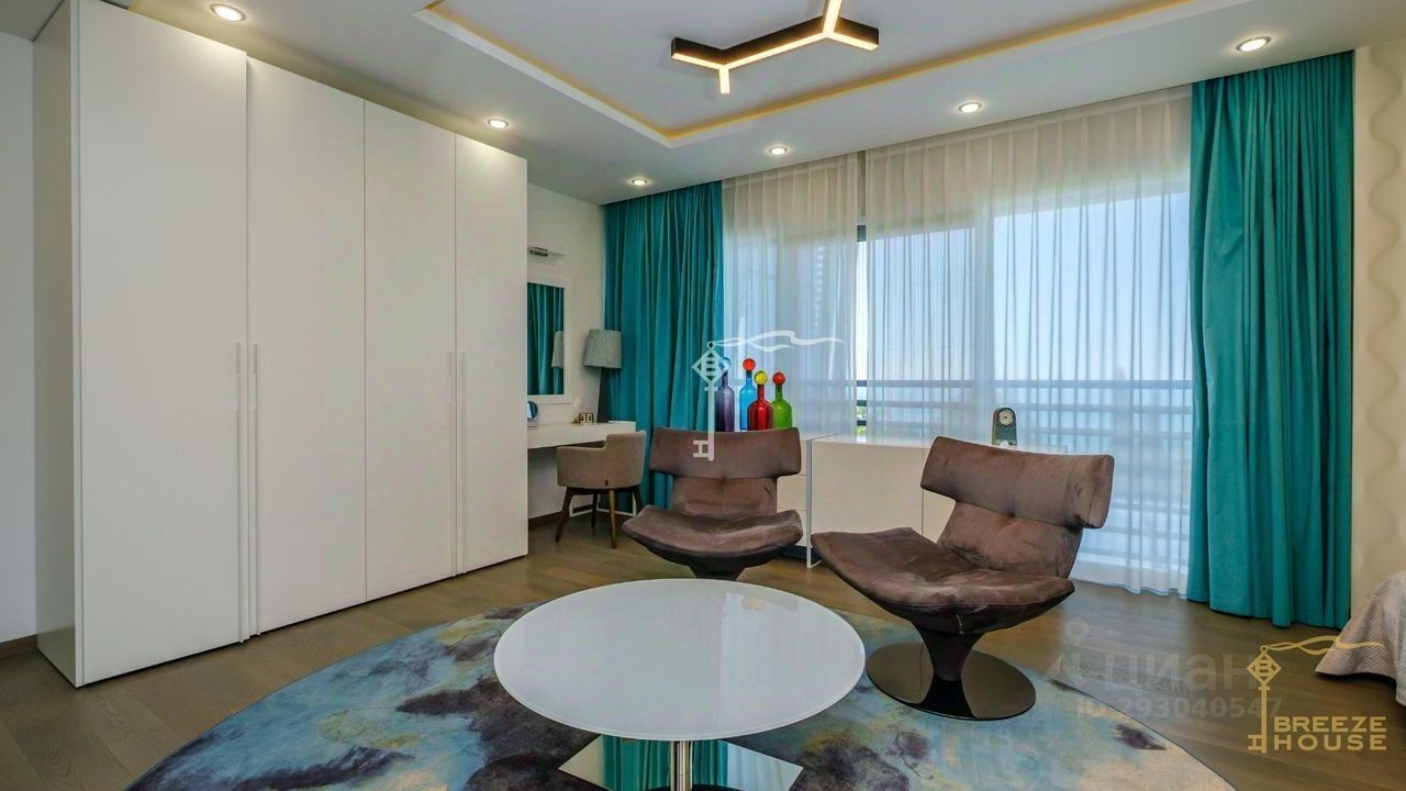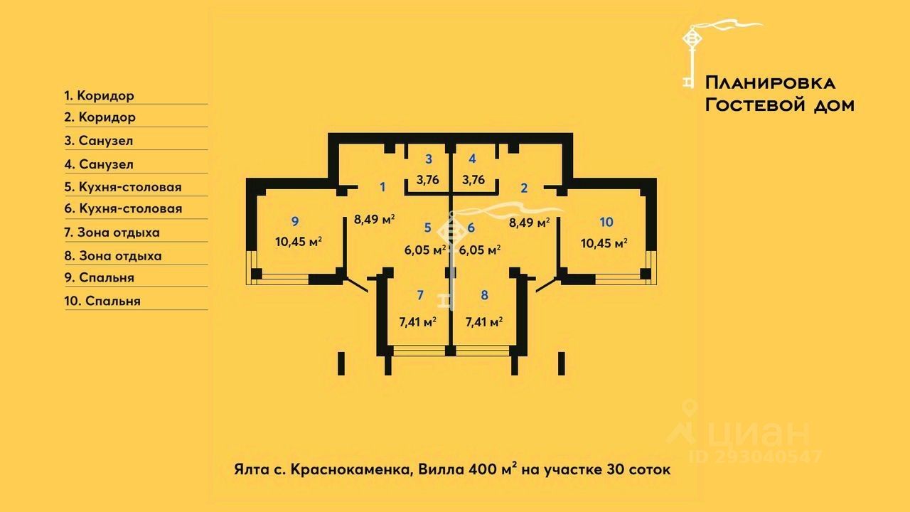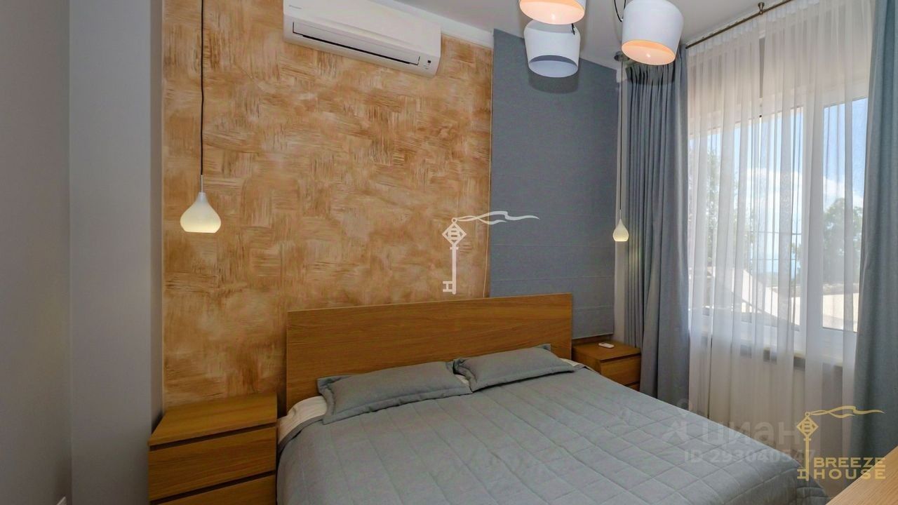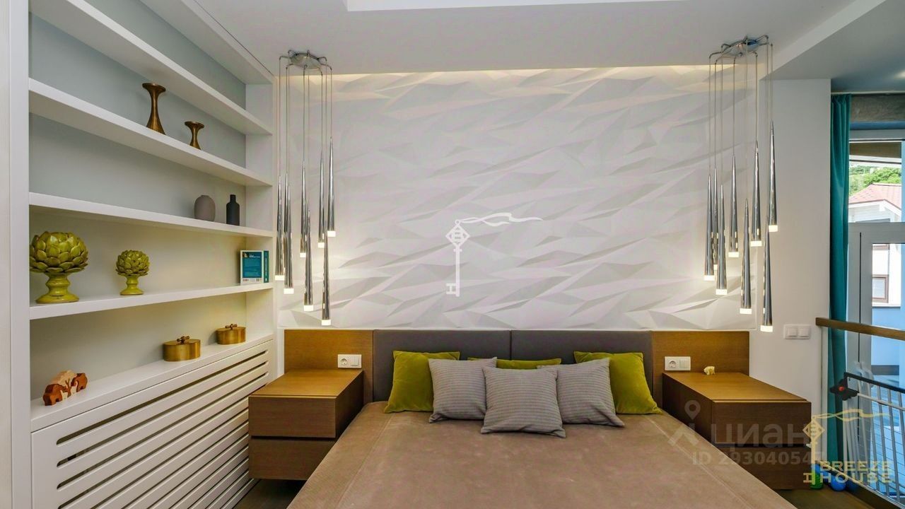 -Гостевои дом 78,6 м² представляет собои две зеркальные квартиры с витражным остеклением в зоне гостинои, дизаин интерьера также выполнен в современном стиле. -Беседку с видом на Черное море и горы. На благоустроенной территории высажены уникальные деревья и растения, завезенные из Италии, сделана система автополива, а также расположены: