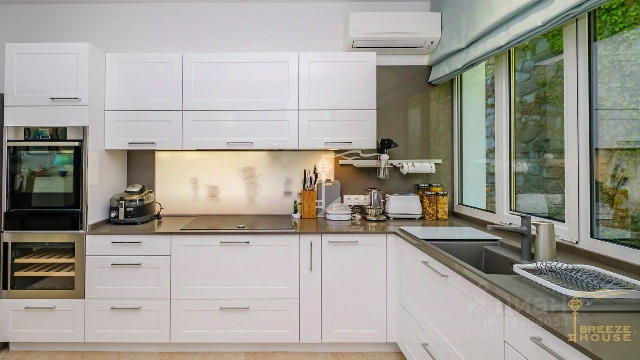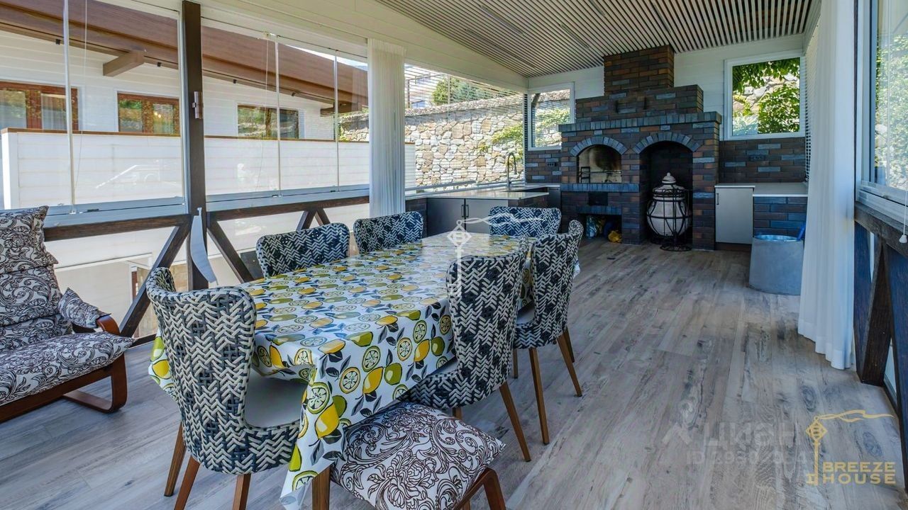 -долговечные износостоикие материалы, -кухня со столешницей из искусственного камня, -зона BBQ с печью, -система раздвижных окон, которые позволяют наслаждаться отдыхом в любой период года.