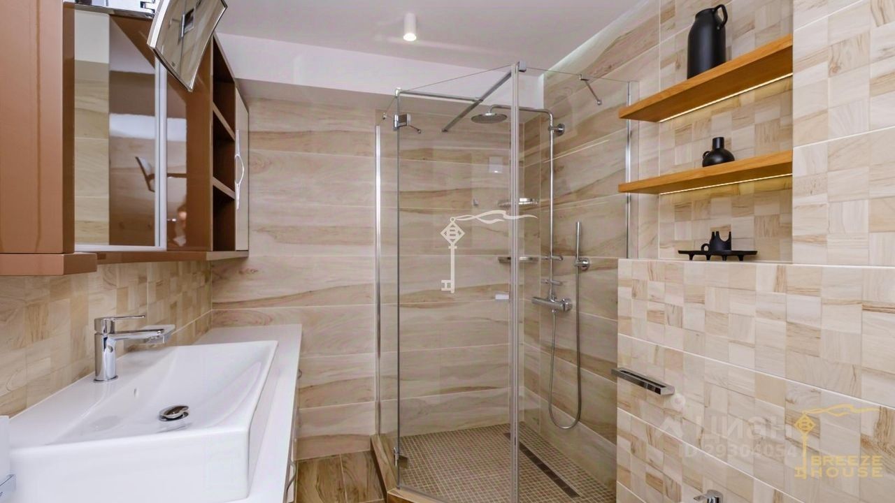 -Вентилируемый фасад, облицовка фиброцементным сайдингом - кедрал, с гарантией 50 лет. -Заполнение стен ракушечником, утеплитель 15 см, -Кровля из ПВХ мембраны, гидроизолирована и заполнена мелкофракционным щебнем, сделана разводка под гелиосистему. -Окна хамелеон- энергосберегающие стеклопакеты, закалённое стекло, -Полы в доме - инженерная паркетная доска Royal Parket, керамогранит, система теплых полов в кухне, гостиной и санузлах, в спальнях и гостевом доме - радиаторы, -Отделка стен венецианской штукатуркой, 3D-панели, -Daikin две отдельных системы вентиляции на каждый этаж с рекуперациеи воздуха. -В каждом помещении кондиционеры Daikin.