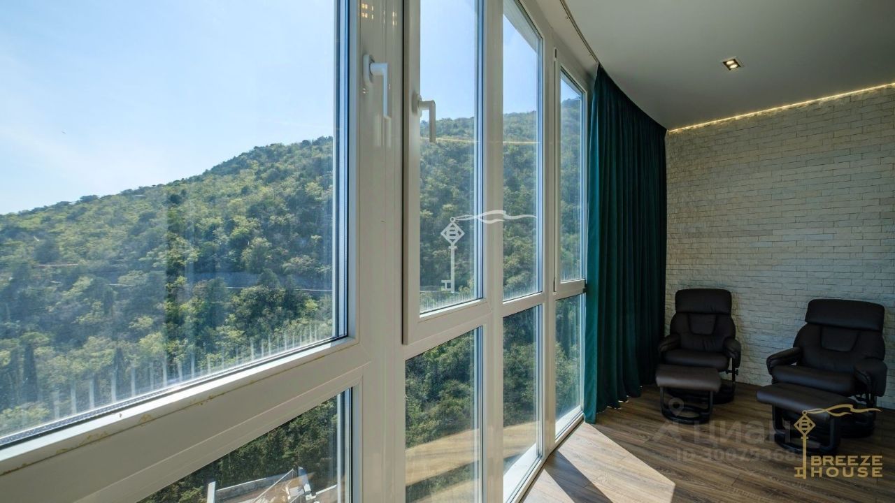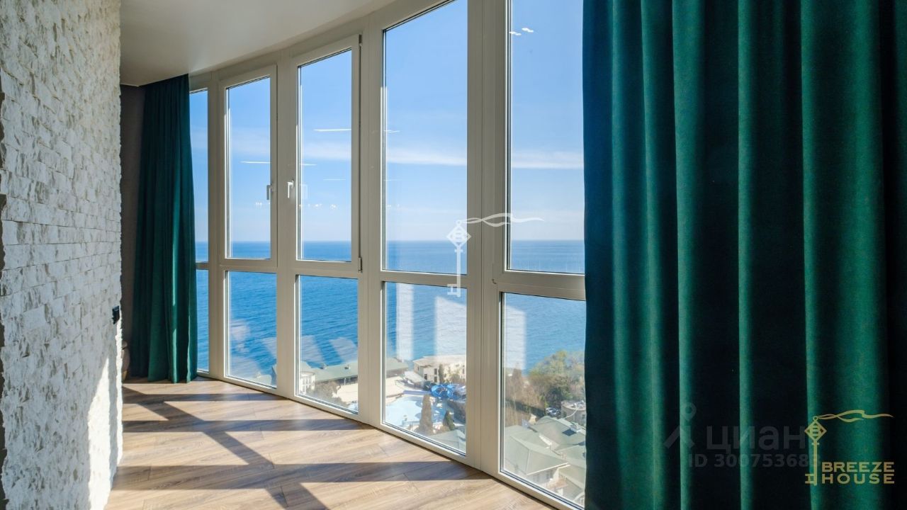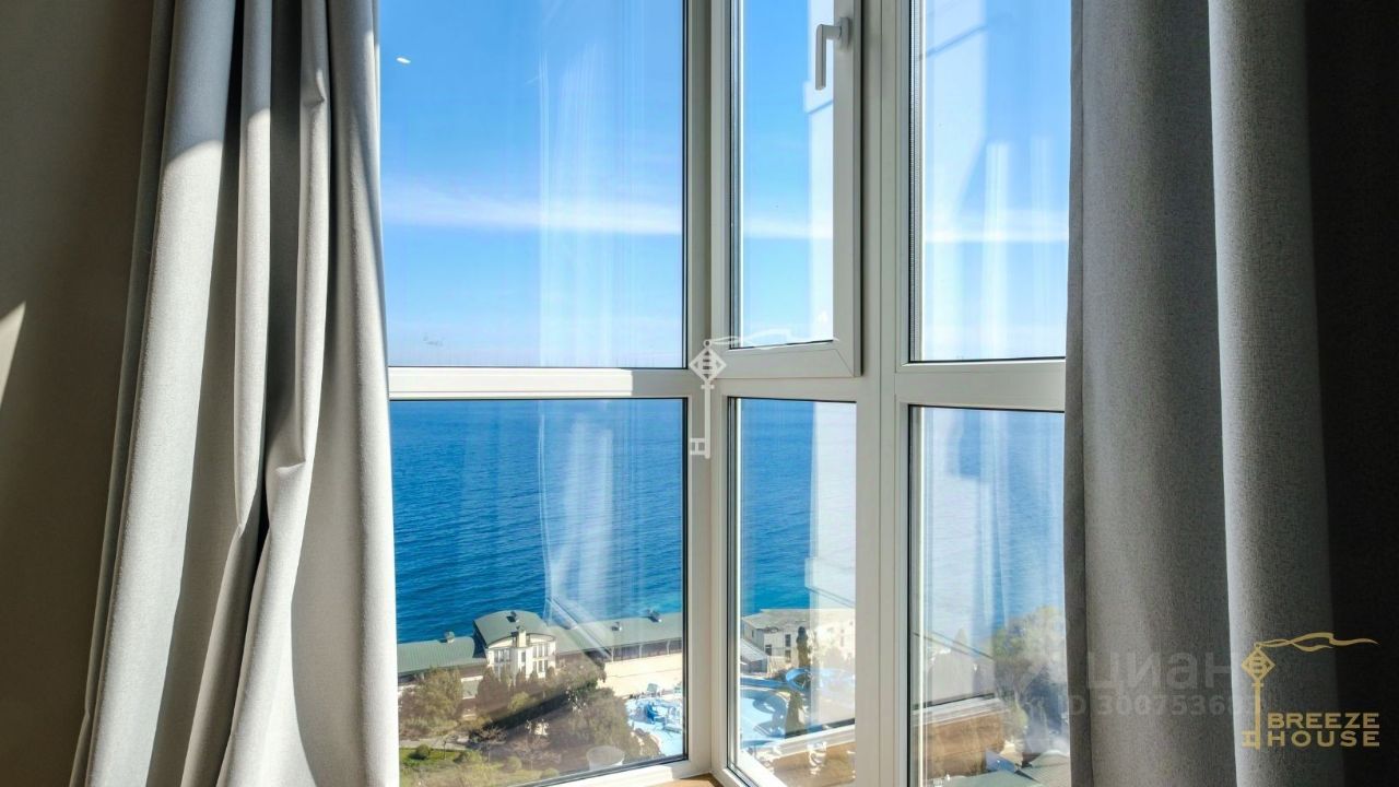 Апартаменты расположены на 11 этаже 14-этажного жилого комплекса, из панорамных окон открывается премиальный вид на море и линию морского горизонта.