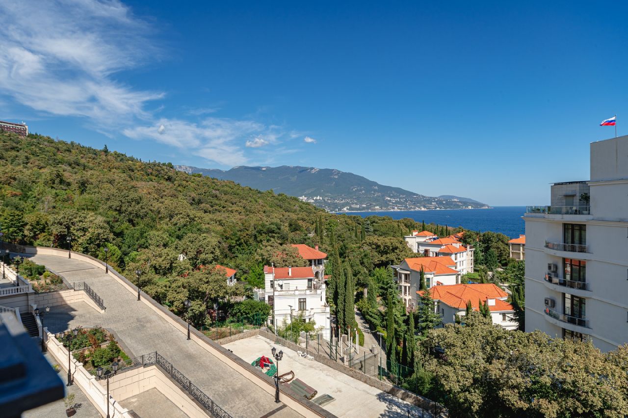 Продается 1-уровневый пентхаус без отделки в премиальном комплексе Дипломат, корпус 8. Панорамные виды на море и горы. Большая терраса. Комплекс построен, сдан. Собственность, оформление по ДКП. На территории 3 открытых бассейна, ресторан, собственный СПА-центр с крытым бассейном, сауна, русская баня, хамам, тренажерный зал. До пляжа 500 метров по закрытой охраняемой территории соседнего санатория.