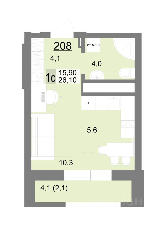 Общая площадь26,1 м2