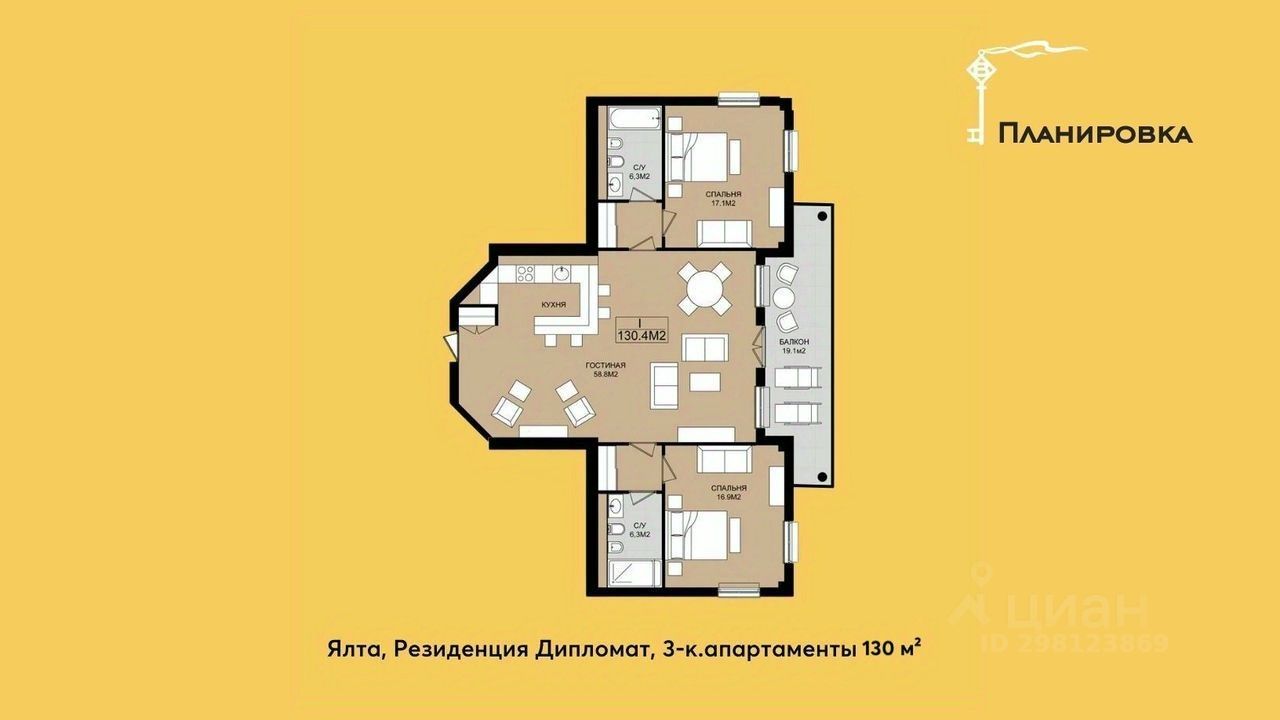Предлагаются к продаже премиальные 3-х комнатные апартаменты общей площадью 130 м² на 5-м этаже 1-го корпуса резиденции класса de luxe ''Дипломат''.