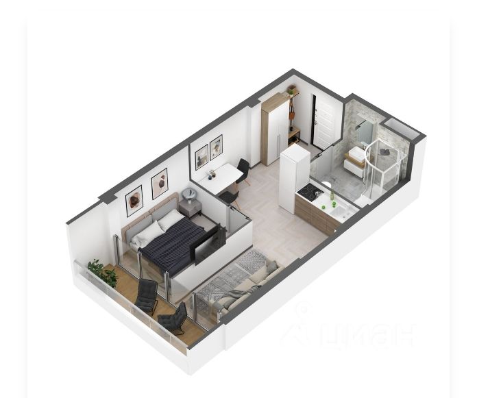 Квартира без ремонта, что позволяет вам воплотить свои дизайнерские идеи и создать пространство, полностью соответствующее вашим вкусам и потребностям. Планировка — студия, что делает помещение светлым и открытым. В квартире есть отдельный санузел.