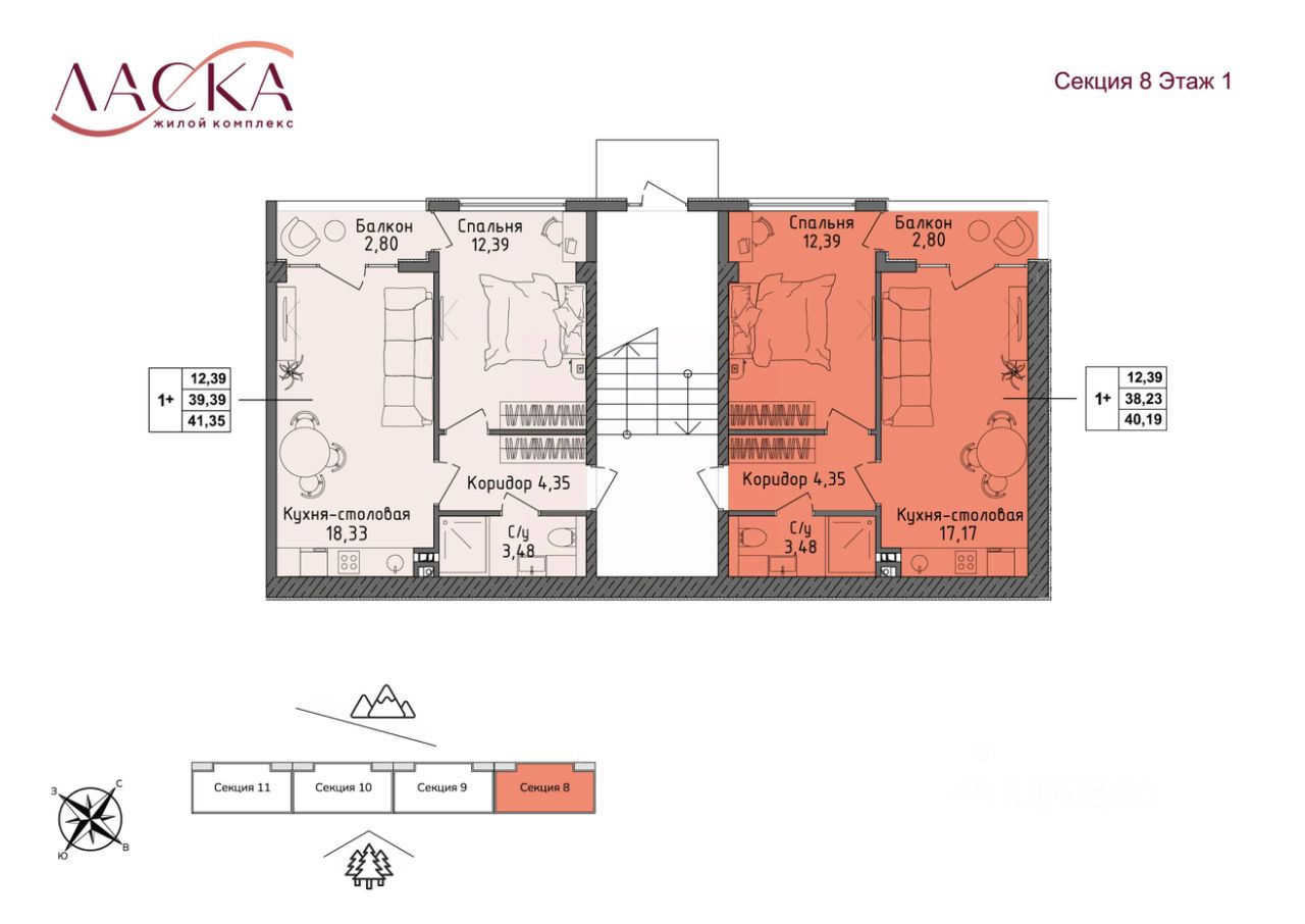 На каждом этаже всего 2 квартиры, что обеспечивает приватность.
