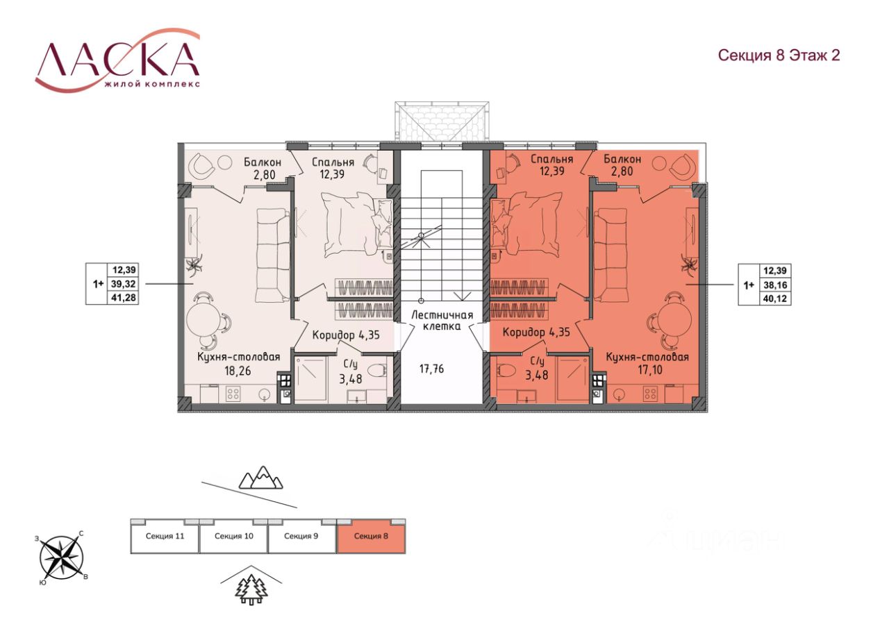 На каждом этаже всего 2 квартиры, что обеспечивает приватность.