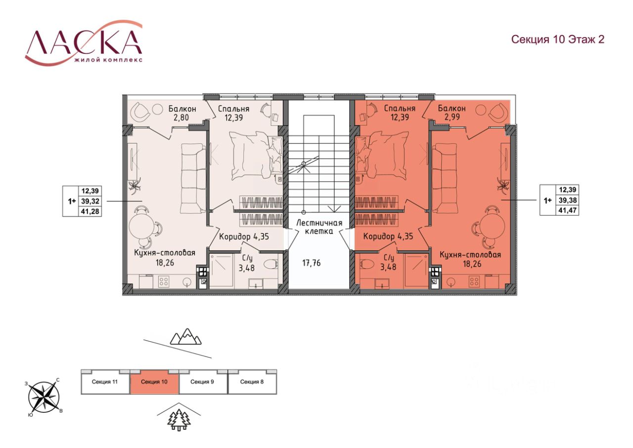 На каждом этаже всего 2 квартиры, что обеспечивает приватность.