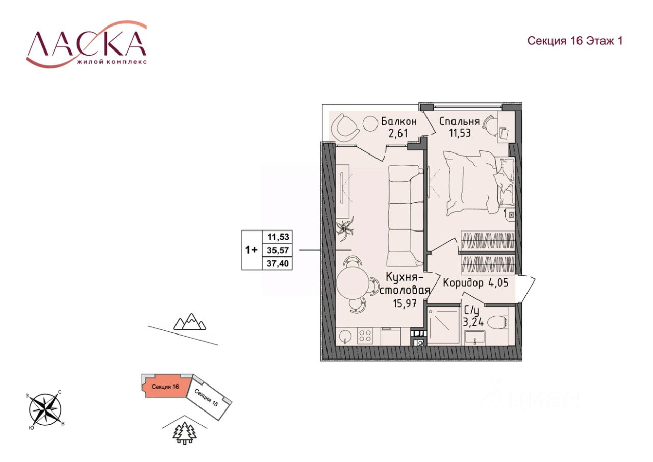 Общая площадь35,57 м2