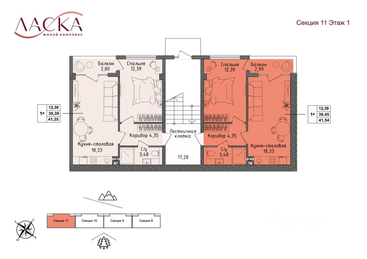 На каждом этаже всего 2 квартиры, что обеспечивает приватность.