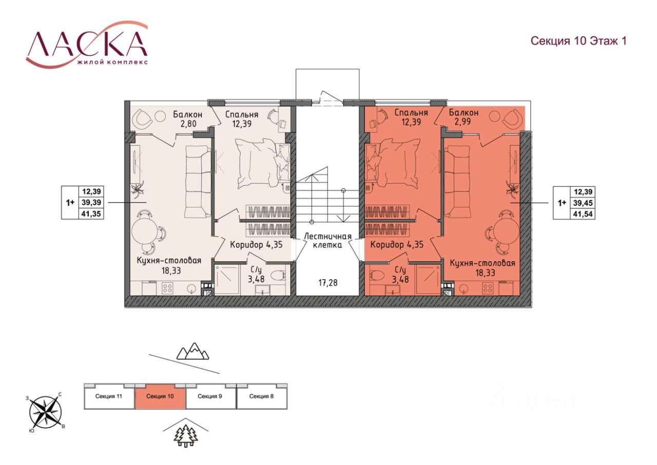 На каждом этаже всего 2 квартиры, что обеспечивает приватность.