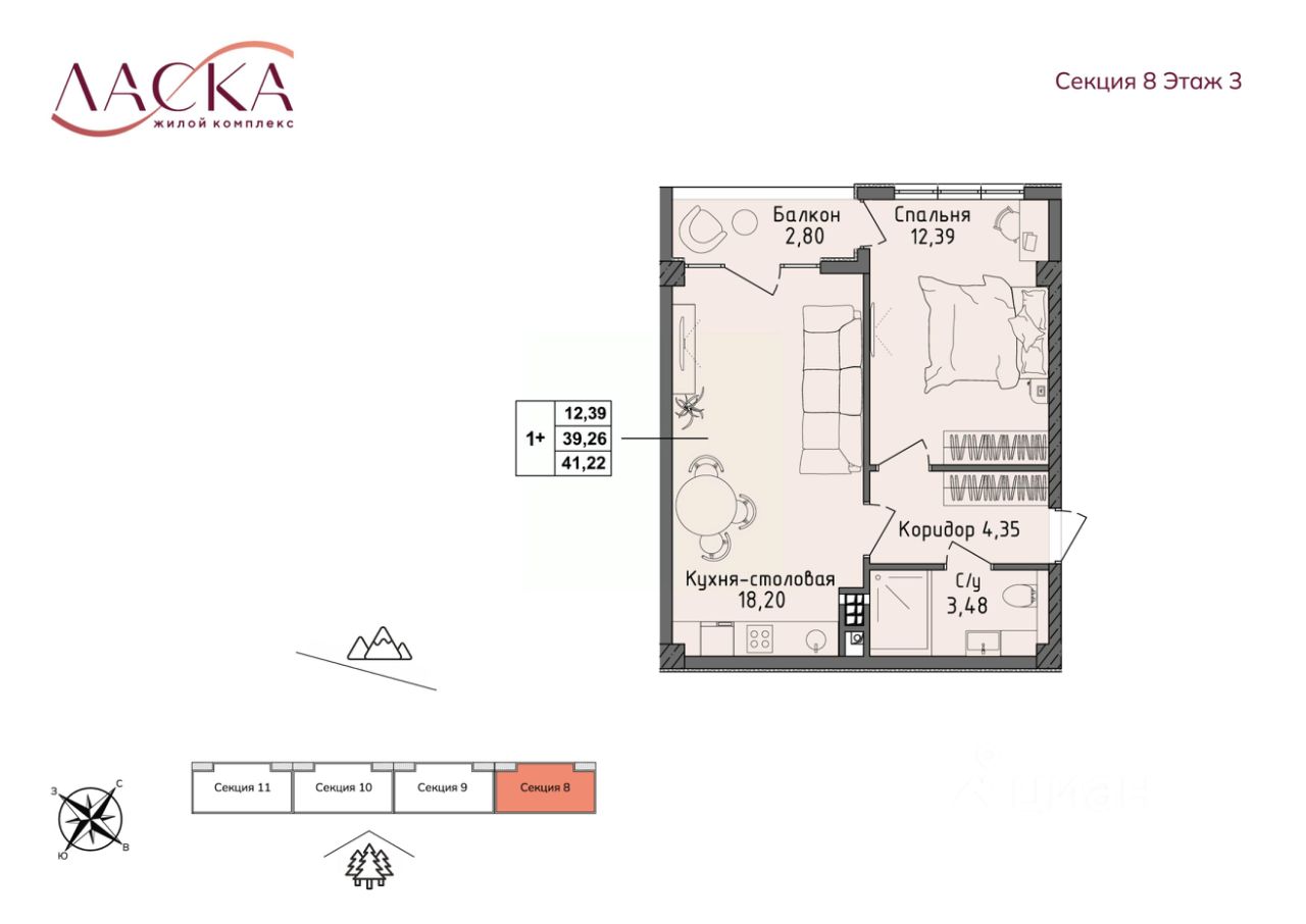 Общая площадь39,26 м2