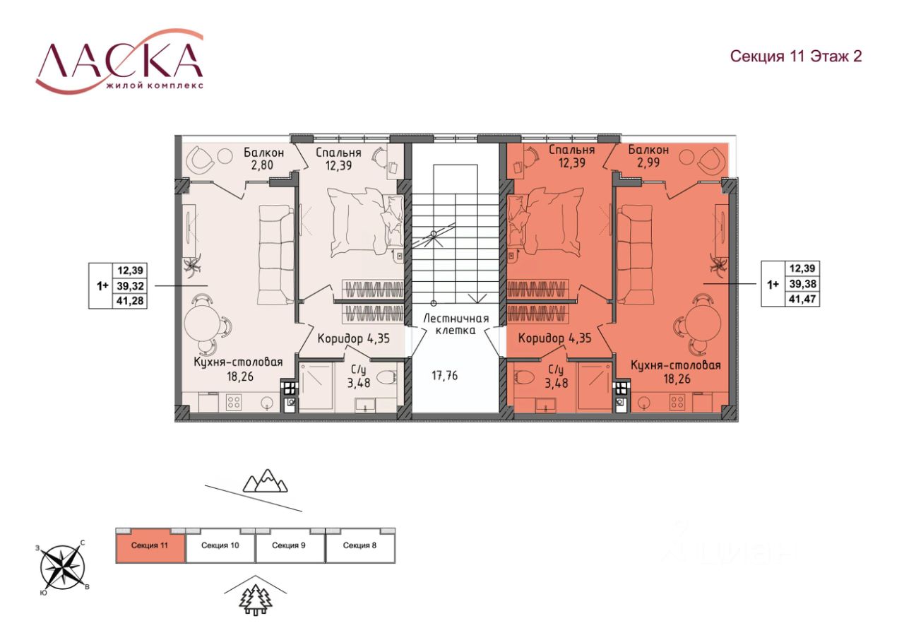 На каждом этаже всего 2 квартиры, что обеспечивает приватность.