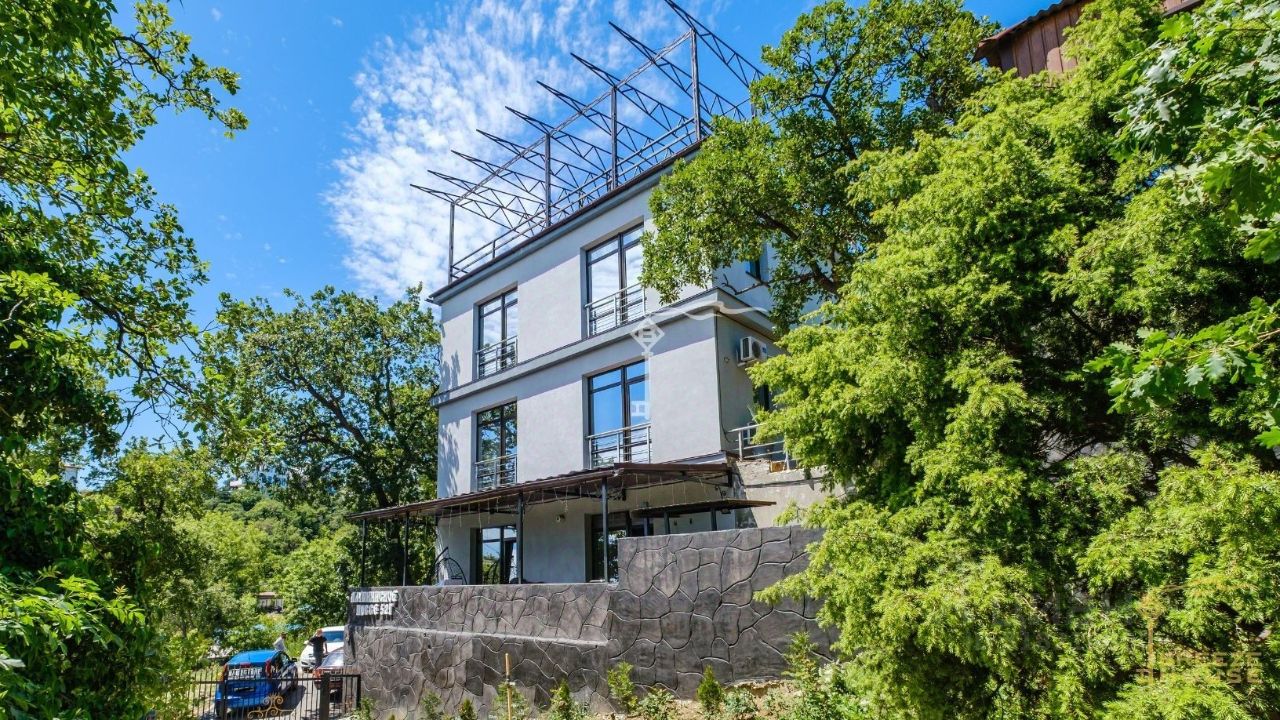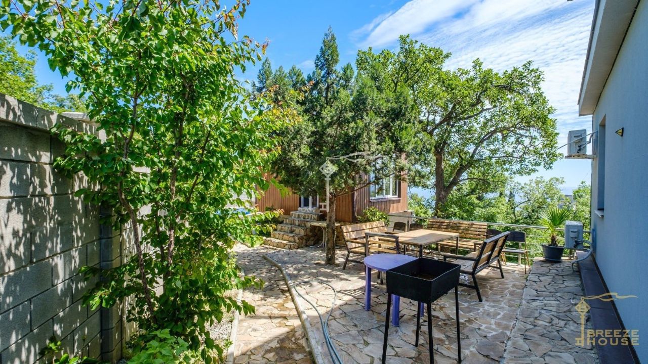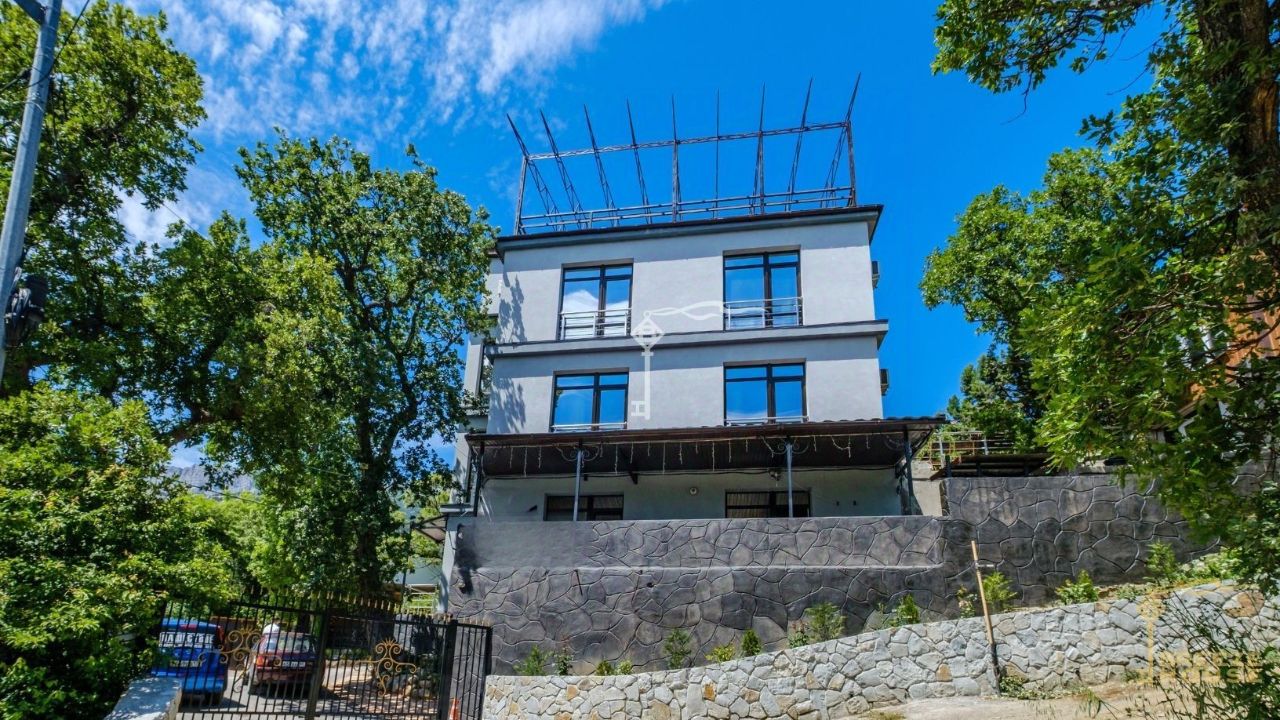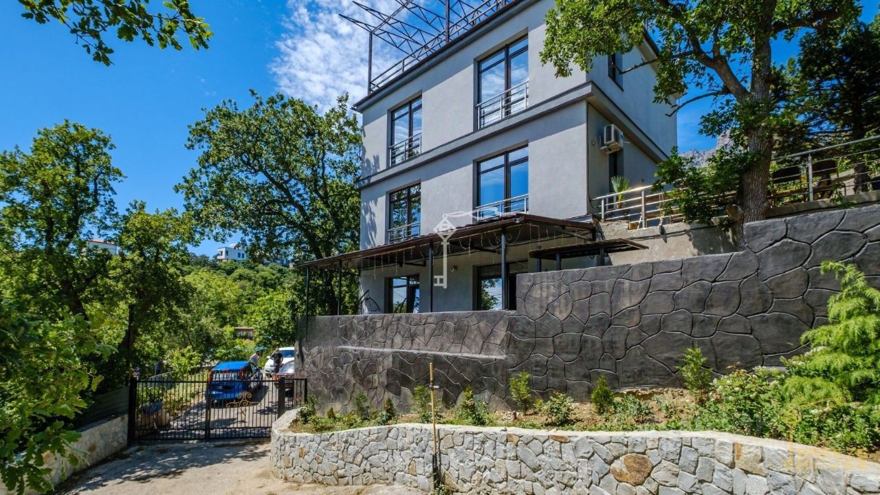 Предлагается к продаже просторный трехэтажный дом 289 м² с эксплуатируемой кровлей, бассейном и гостевым домом на участке 7 соток, расположенный в одном из самых удобных и живописных районов Южного берега Крыма — п. Кореиз.