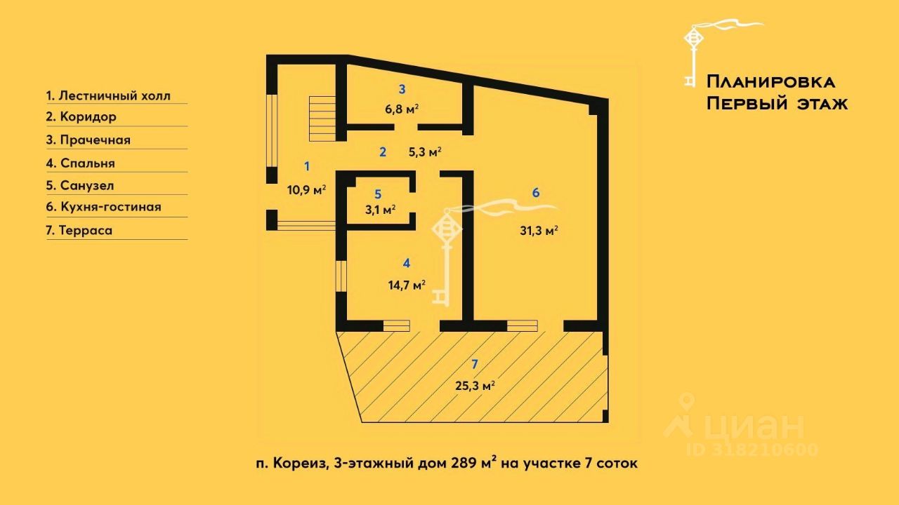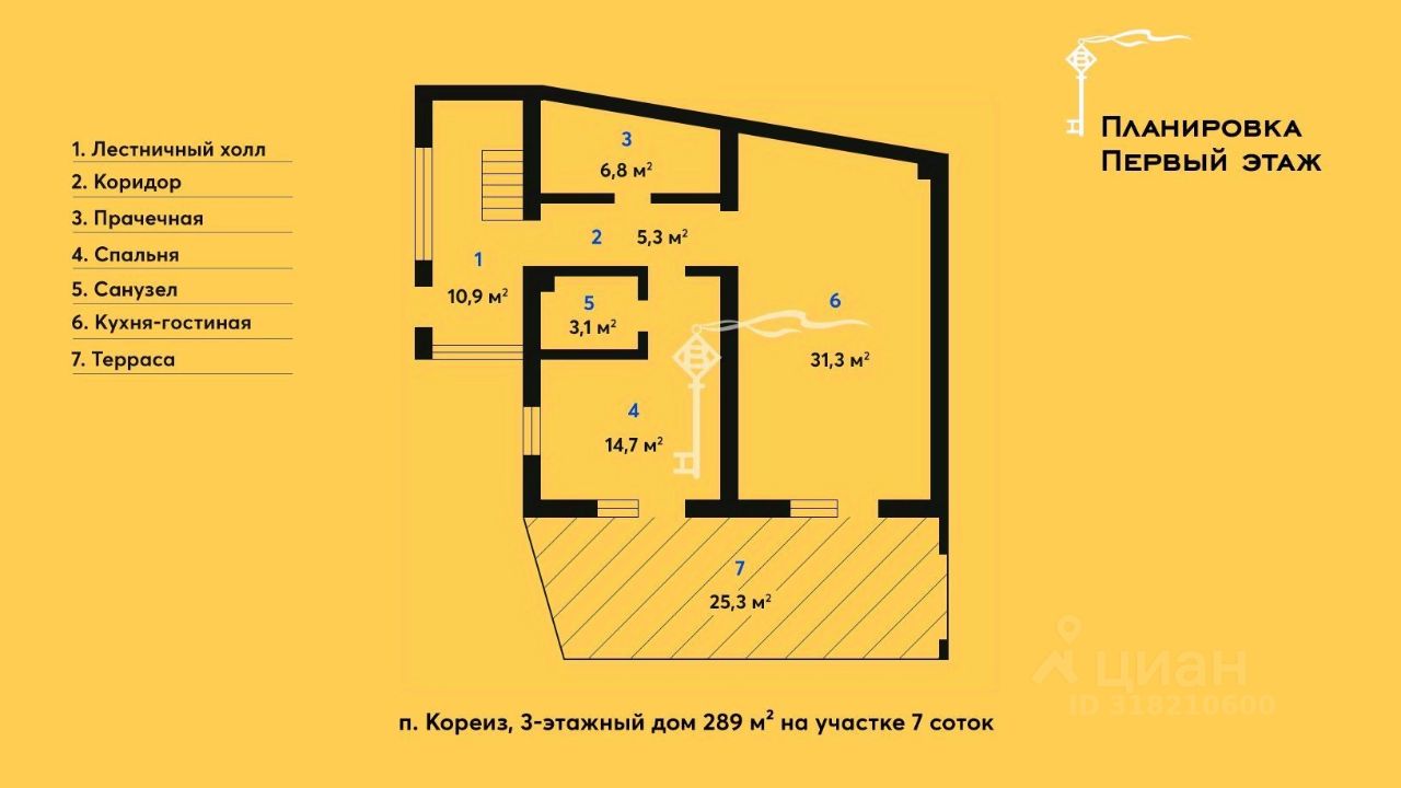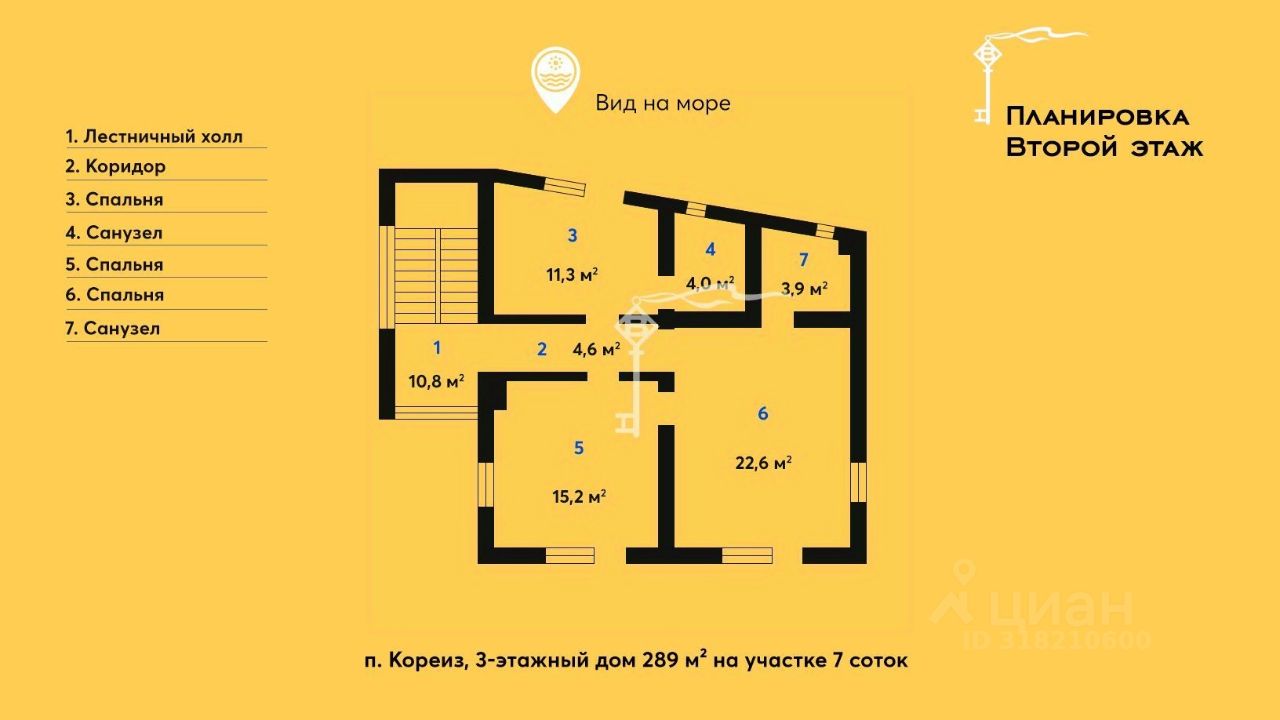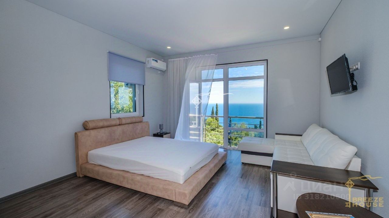 Предлагается к продаже просторный трехэтажный дом 289 м² с эксплуатируемой кровлей, бассейном и гостевым домом на участке 7 соток, расположенный в одном из самых удобных и живописных районов Южного берега Крыма — п. Кореиз.