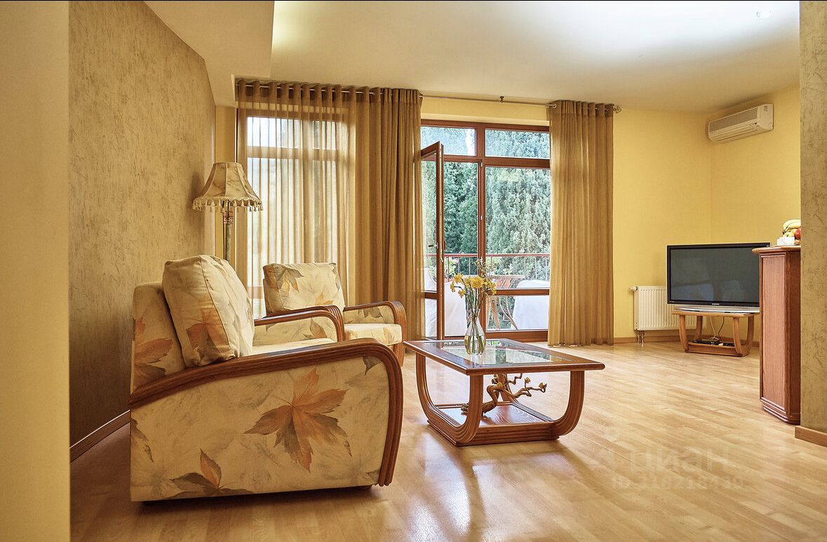 Уникальное предложение на Южном берегу Крыма - Дом площадью 1 800 кв.м. на участке 1 га (собственность), в одном из самых красивых и живописных мест поселке Гурзуф. С дома и участка открываются бескрайние, панорамные виды на море и гору Аю-Даг. Основное здание 5-ти этажное, в строительстве применены высочайшие технологии строительства с использованием натуральных материалов: монолитный каркас с внешним заполнением ракушняком, внутренние перегородки - кирпич, окна из ясеня. В доме 10-ть спален (каждая со своим санузлом), кухня-гостиная с выходом на открытую, восхитительную и невероятно панорамную летнюю террасу с видами на природу, в большинстве комнатах есть балконы, все они так же видовые на море, даже уже с первого этажа. В цокольном этаже расположены: сауна, крытый бассейн (еще не запущен), тренажерный зал, постирочная, котельная. На первом этаже несколько квартир студий для персонала и две гостевые спальни. На остальных этажах спальни и на пятом этаже еще и открытая терраса. В некоторых комнатах, для более приятного проживания, можно сделать косметический ремонт в более современном стиле. На территории открытый бассейн, беседки, детская площадка, прогулочные дорожки. Есть дополнительные помещения для персонала, домик охраны. В доме все центральные коммуникации: газ, водоснабжение, электричество 60 кВт. канализация. К дому ведет своя дорога (новая, идут завершительные работы по укладке асфальта). Во дворе много мест для открытого паркинга. До ближайших оборудованных пляжей 10-15 минут езды. Основной вид разрешенного использования ИЖС, блокированная жилая застройка, образование и просвещение. Есть возможность увеличить территорию еще на 0,5 га, есть удобное место где можно при желании расположить теннисный корт. Дом с его прекрасной и огромной территорией так же подойдет для отеля, санатория (есть возможность строительства дополнительного здания) и других видов услуг для отдыха и восстановления. Вся территория утопает в зелени , тихое, уютное, красивое и респектабельное место. Обращайтесь и с радостью проведу Вам показ этого уникального дома.