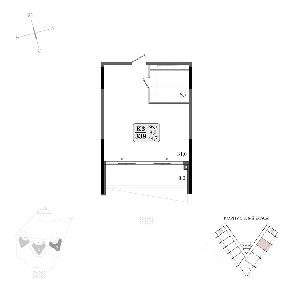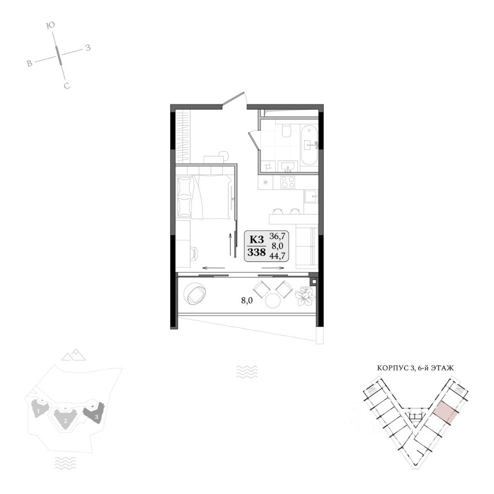 Продаются апартаменты 3/338 площадью 44,7 м2