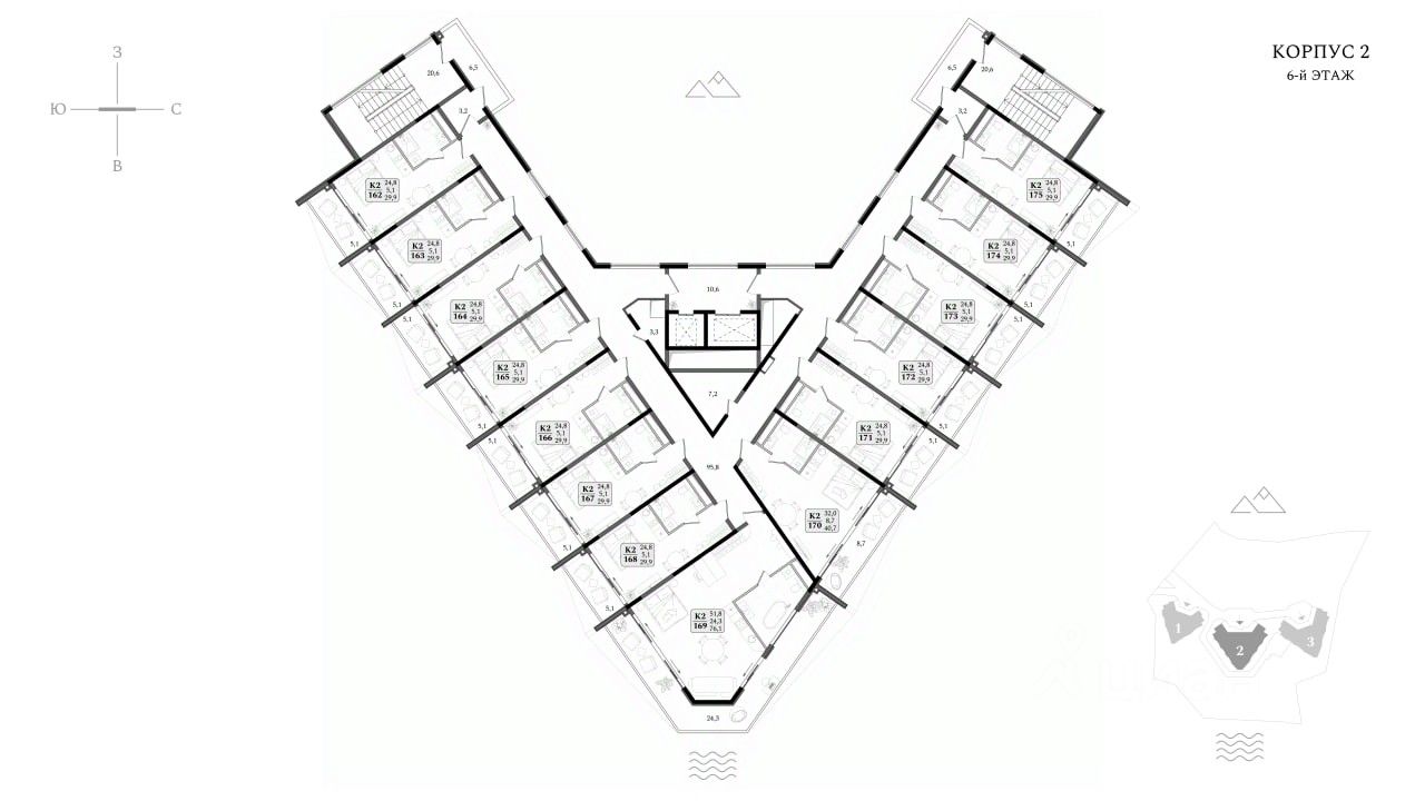 Планировочные решения: Количество апартаментов: 413 Площадь апартаментов: от 29,7 до 212,4 м2 В комплексе представлена широкая линейка планировочных решений от студий до двухуровневых пентхаусов на последних этажах. Комплекс обладает 100% видовыми характеристиками, а панорамные раздвижные окна позволяют любоваться пейзажами, не вставая с кровати.