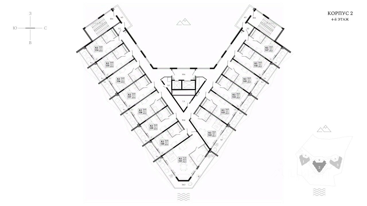 Планировочные решения: Количество апартаментов: 413 Площадь апартаментов: от 29,7 до 212,4 м2 В комплексе представлена широкая линейка планировочных решений от студий до двухуровневых пентхаусов на последних этажах. Комплекс обладает 100% видовыми характеристиками, а панорамные раздвижные окна позволяют любоваться пейзажами, не вставая с кровати.