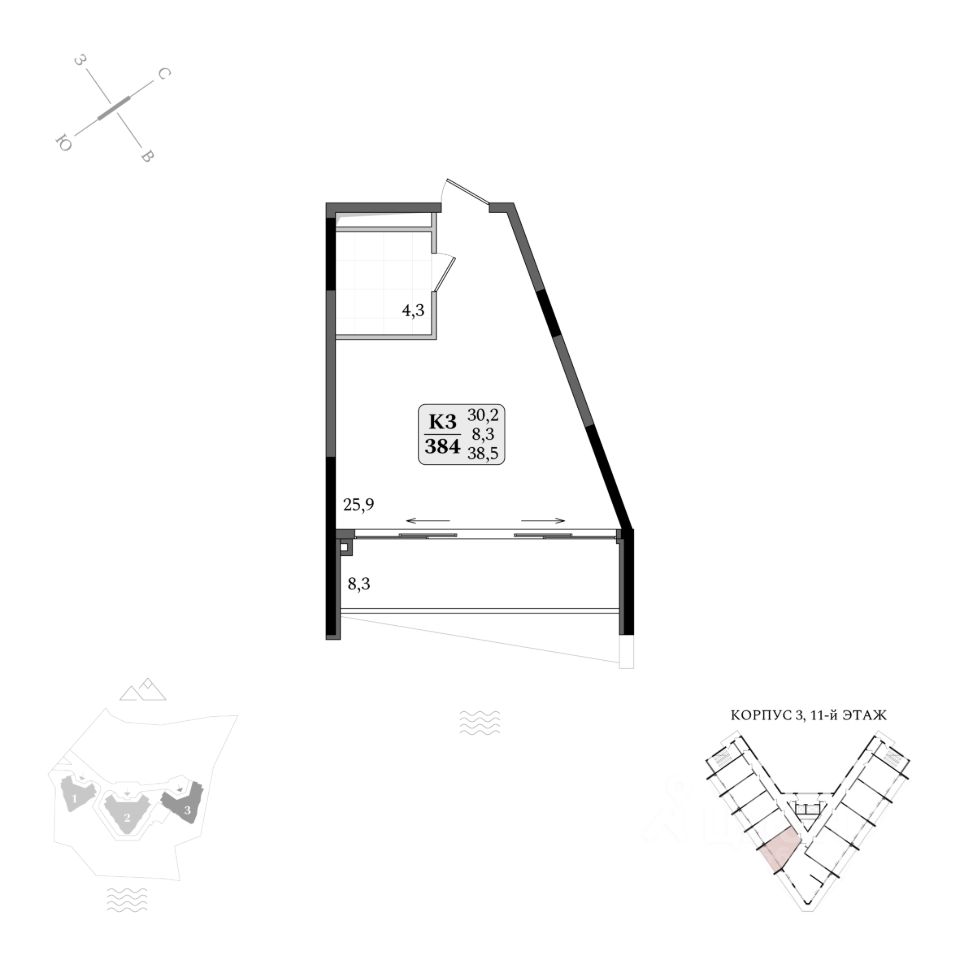 Продаются апартаменты 3/384 площадью 38,5 м2