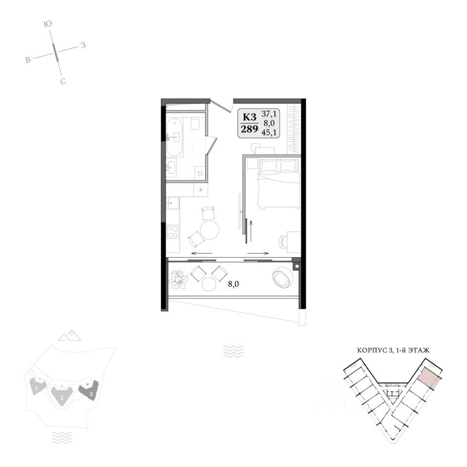 Продаются апартаменты 3/289 площадью 45,1 м2