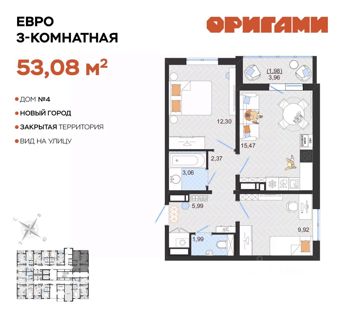 Комфортная квартира с грамотной планировкой: разумное расположение комнат и просторная кухня гостиная. Отделка ''под ключ'' от застройщика.