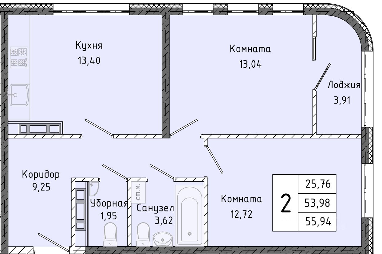 Общая площадь55,94 м2