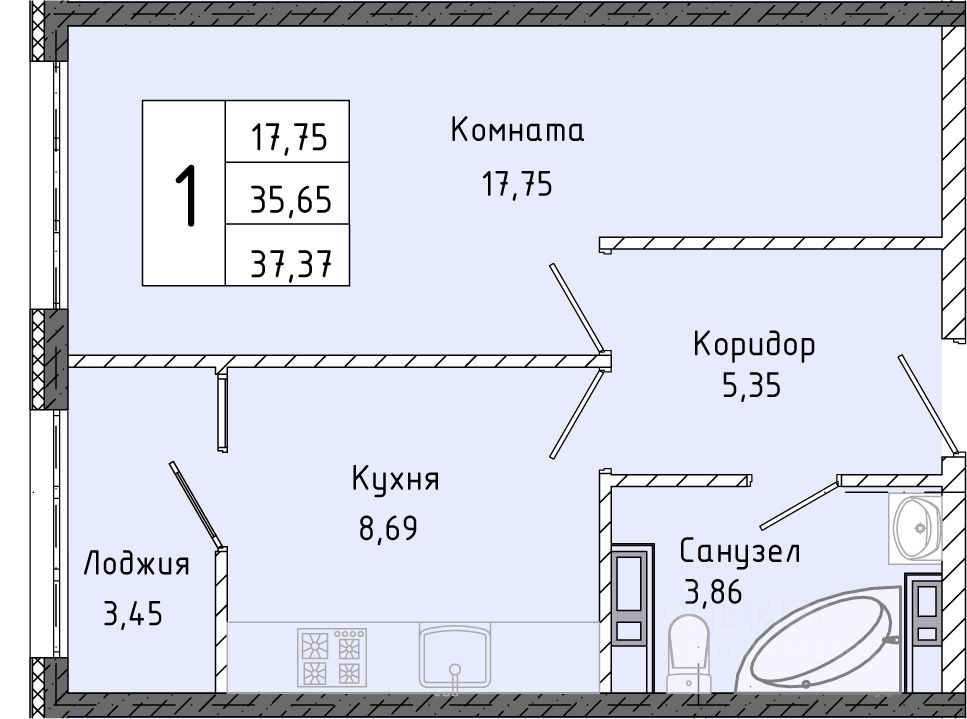 В продаже квартира 37,37 м2 в эко-квартале Партенит Парк!
