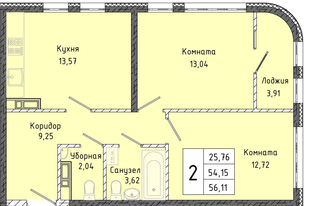 Общая площадь56,11 м2