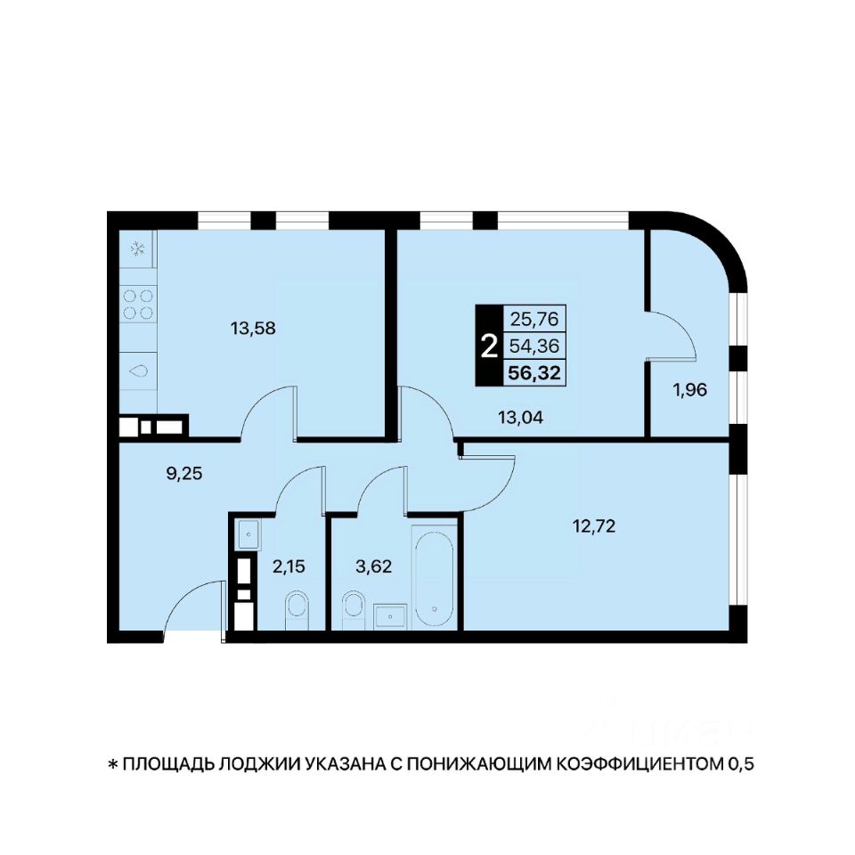 В продаже квартира 56,32 м2 в эко-квартале Партенит Парк!