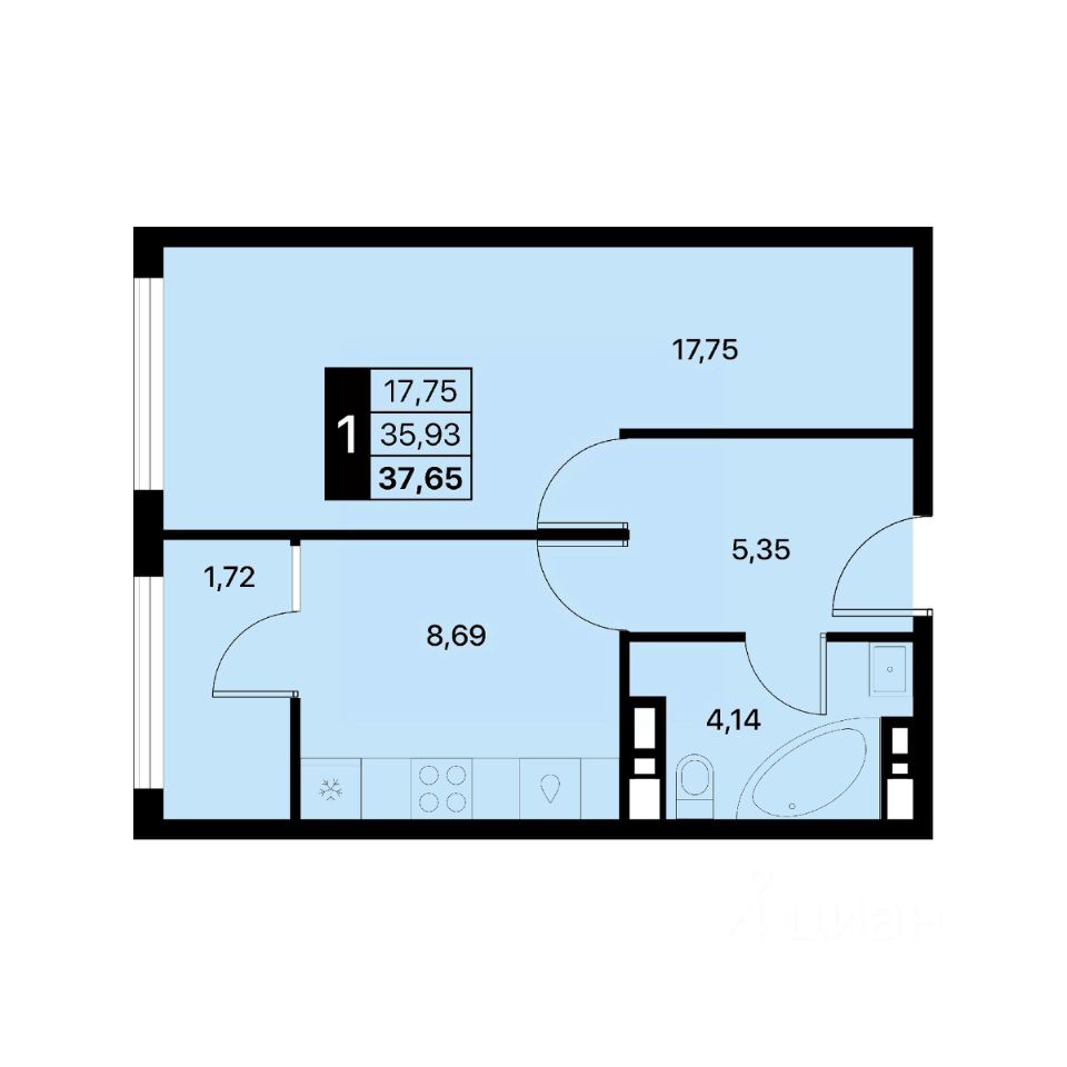 Общая площадь37,65 м2