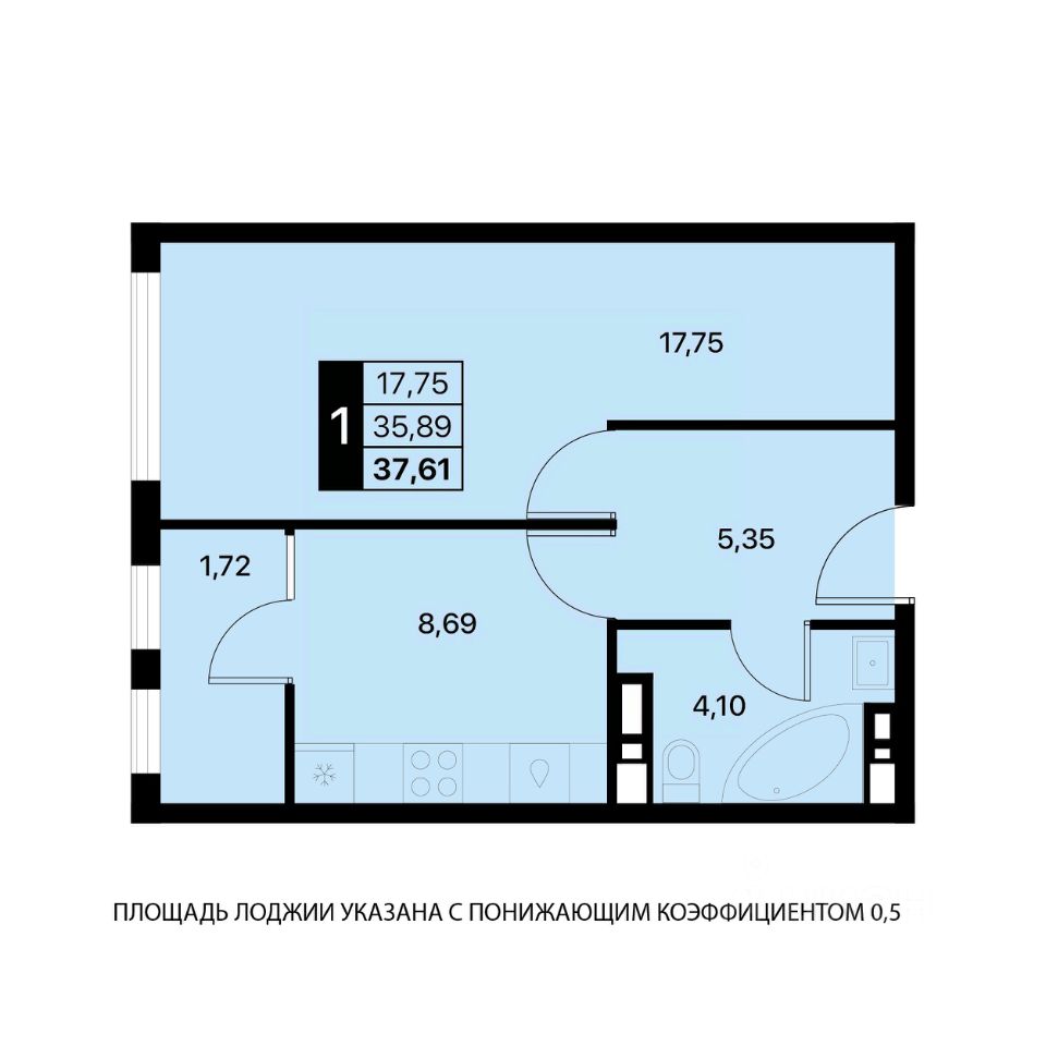 В продаже квартира 37,61 м2 в эко-квартале Партенит Парк!