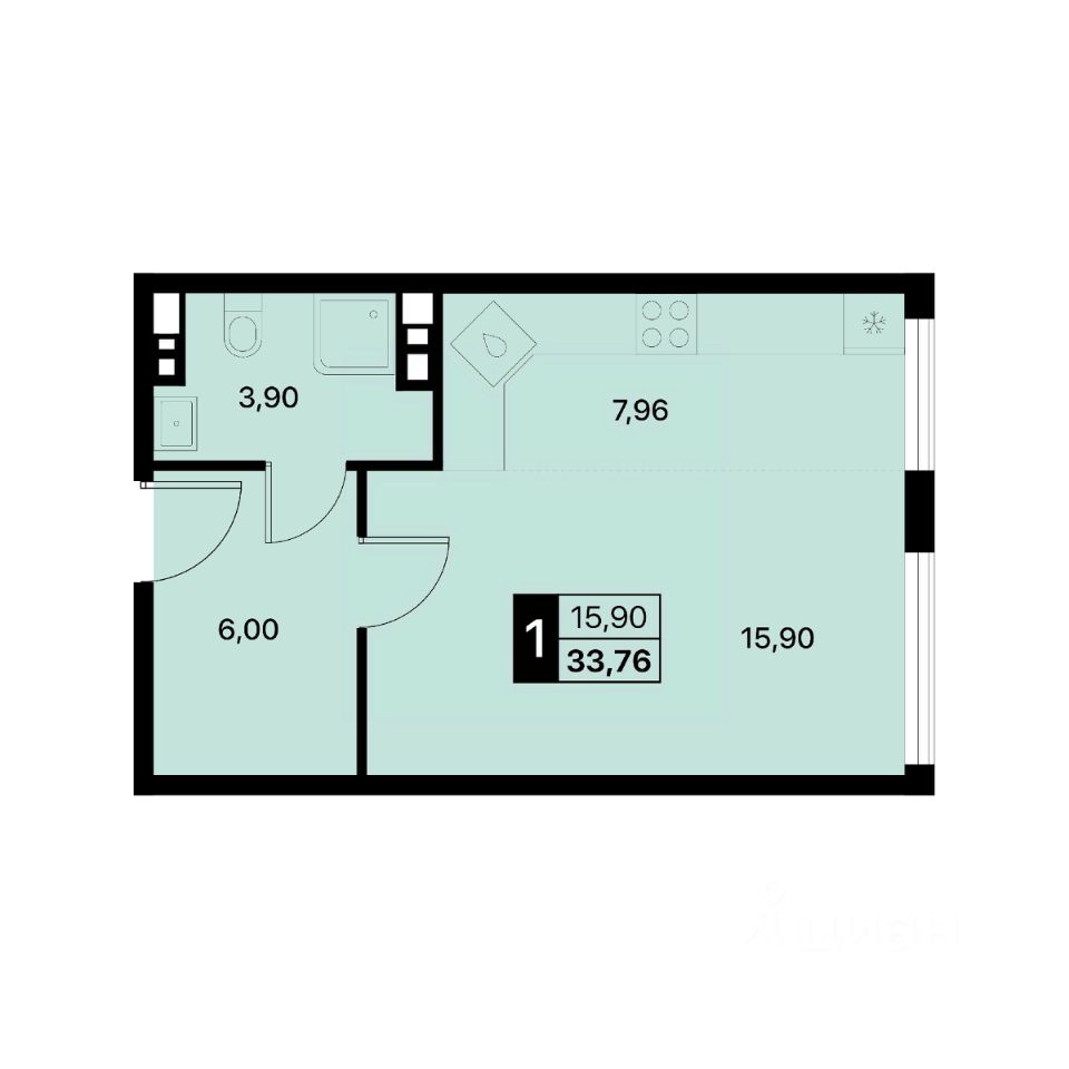 Общая площадь33,76 м2